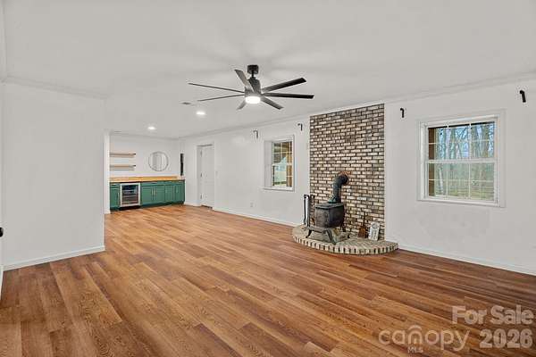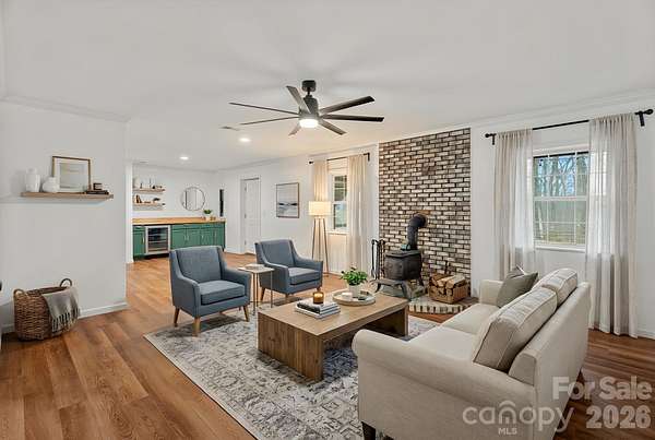 Welcome to your dream home! Nestled on 3.12 private acres, this stunning residence offers a perfect blend of modern amenities and serene outdoor living. Enjoy 3 spacious bedrooms plus a bonus/flex room, including primary conveniently located on the main floor. The home boasts 2 full baths and 2 half baths, providing ample comfort and privacy for family and guest.The heart of the home features quartz countertops that exude elegance, complemented by wood flooring throughout the main level, creating a warm and inviting atmosphere. So many perks you have to see, including but not limited to plantation shutters through-out and a unique laundry chute from upstairs that leads directly to the laundry room making chores a breeze.Discover a beautifully finished walk-out basement complete with half bath, an area for an office or bedroom, beverage cooler and custom cabinetry, and a wood burning stove perfect for entertaining or relaxing. Also, in the basement, you'll notice the single car garage has been transformed into a home gym/play area allowing you to maintain fitness without leaving your home. You'll want to step outside onto the Trex decking of the back deck where you can enjoy peaceful views of your expansive backyard. The screened-in picnic area below the deck provides a charming space for outdoor dining, while the custom-built fire pit area invites cozy evenings under the stars. This home is not just a residence; it's a lifestyle. With its perfect combination of comfort, luxury, and functionality, you'll enjoy every moment spent here. Dont miss the opportunity to make this exquisite property your own!