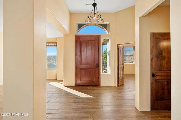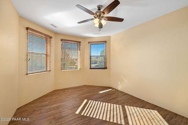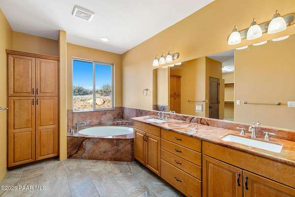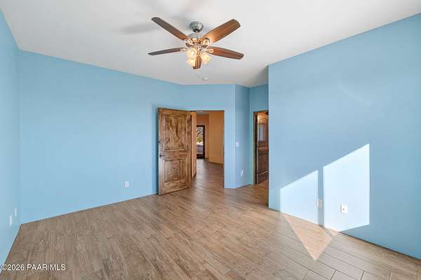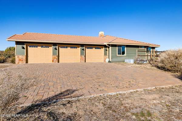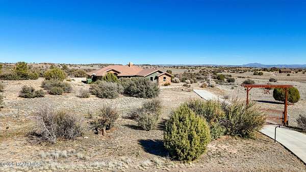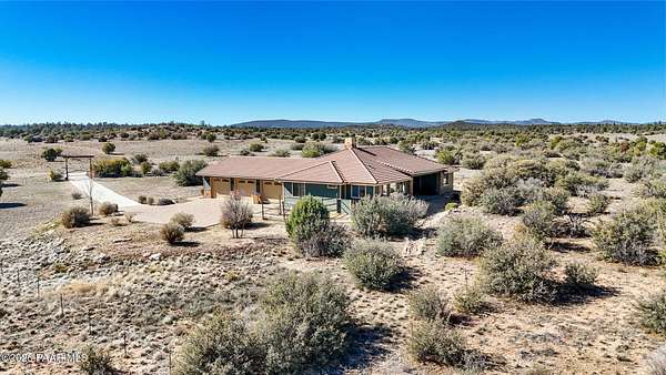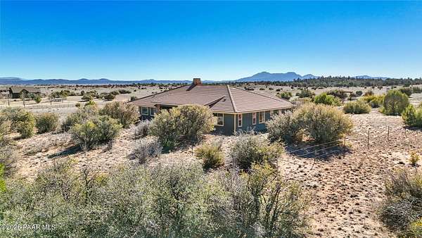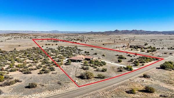 Set on an expansive 20-acre parcel in Las Vegas Ranch Estates, this exceptional property offers breathtaking views of Granite Mountain and Mingus Mountain, delivering wide-open skies, privacy, and true Arizona beauty.The thoughtfully designed home features a main bedroom suite, a guest suite, 3 bathrooms, a dedicated office, and a versatile flex room, ideal for a gym or hobby space. Entertain with ease in the formal dining room, or relax in the stunning great room, where large windows flood the space with natural light and perfectly frame the surrounding mountain views.At the heart of the home is a chef's kitchen, complete with granite countertops, a gas range, double ovens, and a spacious pantry--designed for both everyday living and hosting unforgettable gatherings.With room to roam, unmatched views, and a layout that blends comfort with functionality, this property offers the rare opportunity to enjoy refined living in a serene ranch-style setting.