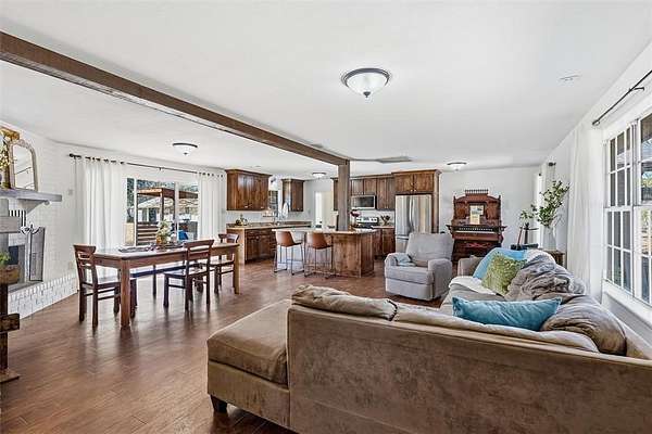 The converted garage provides two flexible bonus areas, perfect for a home office, studio, gym, game room and additional living space. Step outside to enjoy a large wood deck with a firepit, ideal for entertaining or relaxing under the Texas sky.