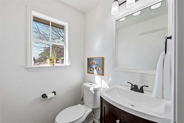 Built in 1979, the home has been thoughtfully updated with an upgraded kitchen and primary bathroom, newer carpet in the bedrooms, and luxury vinyl wood flooring throughout the main living areas. A beautiful stone fireplace anchors the open kitchen, living, and dining space, creating a warm and inviting heart of the home.