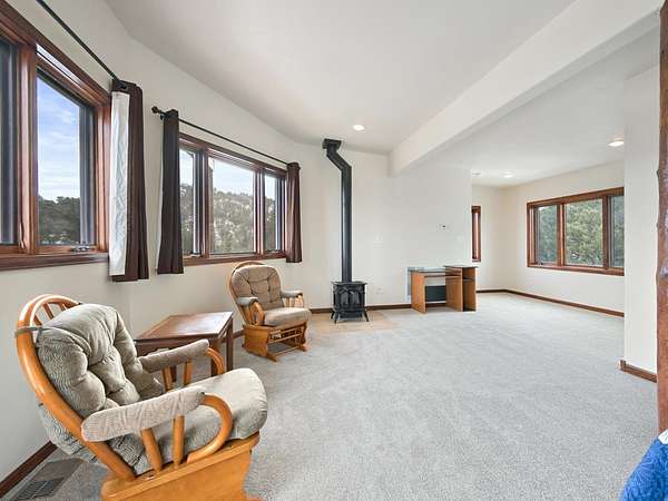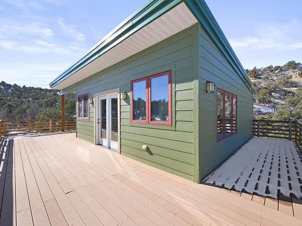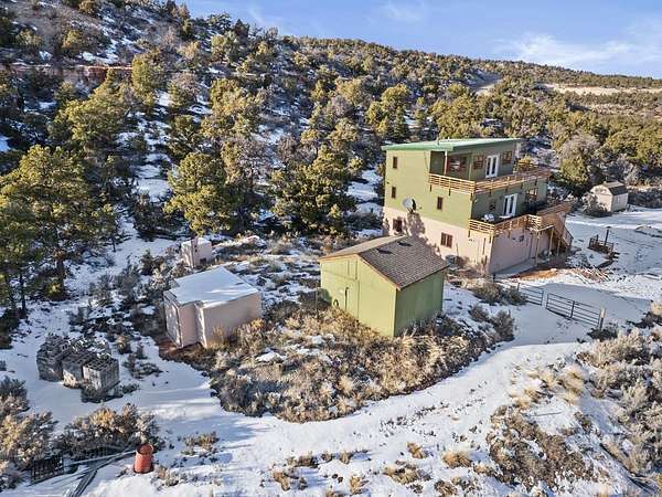 Would you like to experience the serenity, peace, and security that comes with mountain cabin life... plus a bunker? Come see this one-of-a-kind property sitting on nearly fourteen acres of undisturbed land on the Colorado National Monument. Perfectly secluded, you'll love the unmatched privacy, quiet, and sweeping natural surroundings. Below grade, you'll find an impressive 1,400 sq ft bunker constructed with concrete-reinforced steel walls, along with an additional 1,400 sq ft of storage space. The underground shelter includes 5 bedrooms, a kitchen, bathroom, and ample living space, and comes equipped with an NBC (nuclear, biological, chemical) filtration system, power inverter with AGM batteries, a 5 kW diesel generator, and a 500-gallon underground propane tank. With two entry points plus an emergency escape hatch, storage for 7,000+ gallons of water, geothermal heating and cooling, and a 3-bar structure built to withstand extreme pressure, this space is designed for true peace of mind. Above ground, the main cabin has been beautifully refreshed with new granite countertops in both the kitchen and bathrooms, new light fixtures, new carpet and luxury vinyl plank flooring, and fresh interior paint throughout. The updated bathrooms feature new fixtures, giving the home a clean and modern feel while still maintaining its cozy cabin charm. Step inside to a bright, naturally lit main living area complete with a free-standing gas fireplace - the perfect mountain retreat feature. The space flows seamlessly into the kitchen and dining area, ideal for entertaining or relaxing after a day outdoors. Two additional bedrooms are located just off the main living space with convenient access to a full bathroom. Upstairs, the spacious primary suite is a true escape, featuring another free-standing gas fireplace, a stunning wood accent pillar, and breathtaking views you'll never get tired of waking up to. A walk-in closet and private en-suite bath complete the suite. Outside, you'll appreciate the many exterior improvements including most exterior doors being replaced, new deck railings, and some landscaping updates to enhance curb appeal and usability of the property. The oversized basement garage offers massive storage and workspace, and has been upgraded with an epoxy-coated garage floor and new garage door operators, making it as functional as it is impressive. This is a rare and unmatched opportunity to own a secure mountain paradise with modern updates already done.
