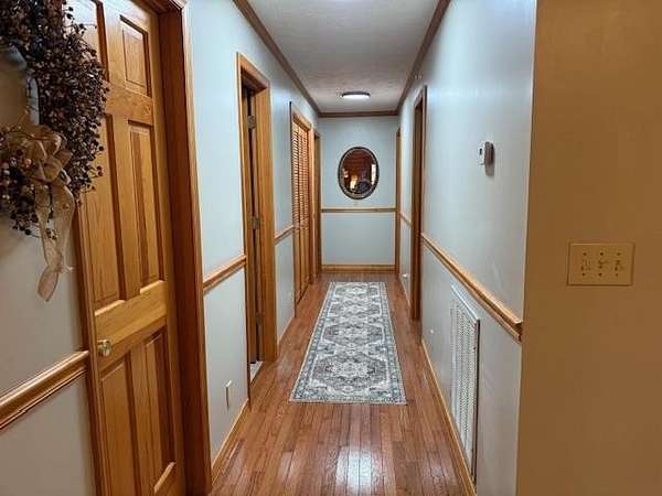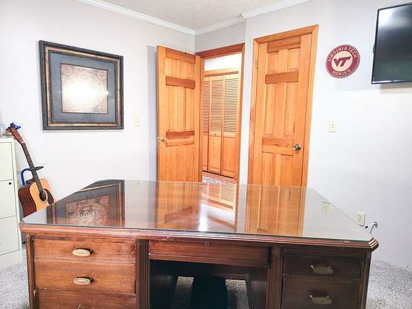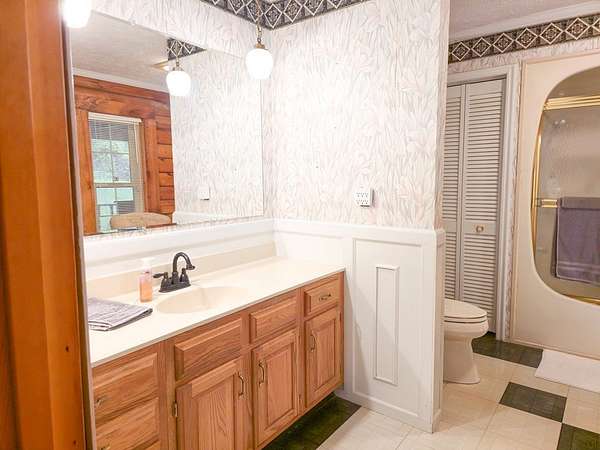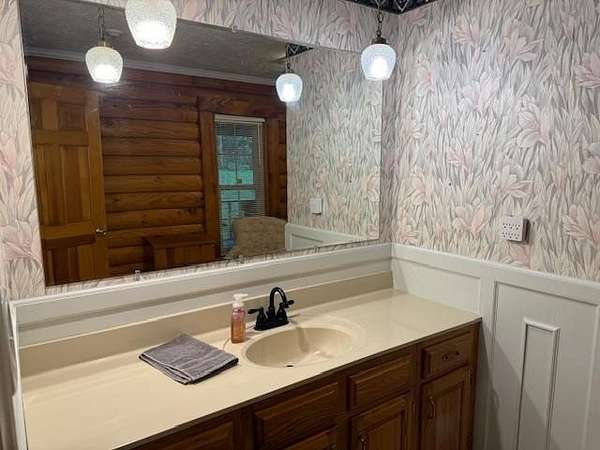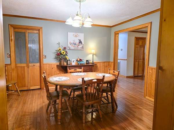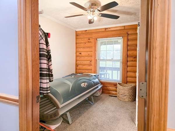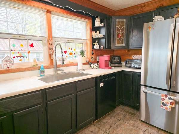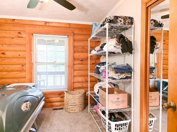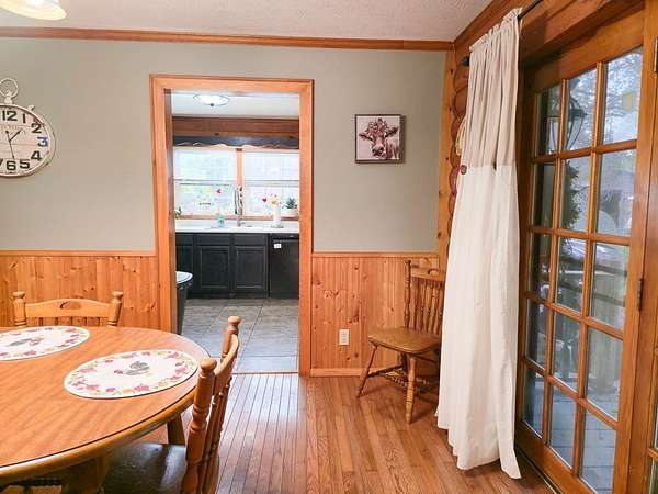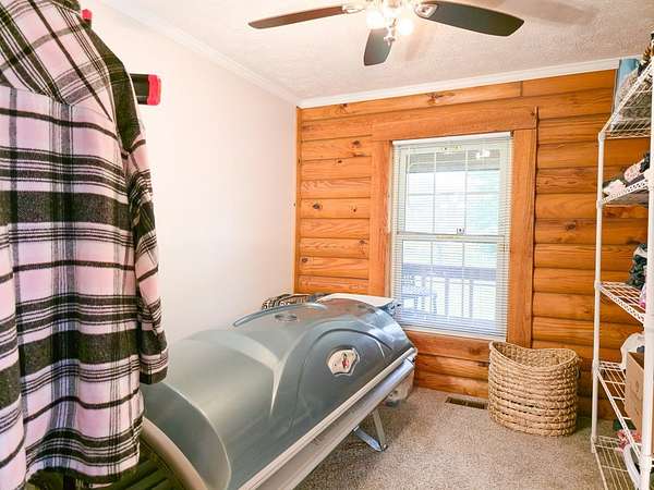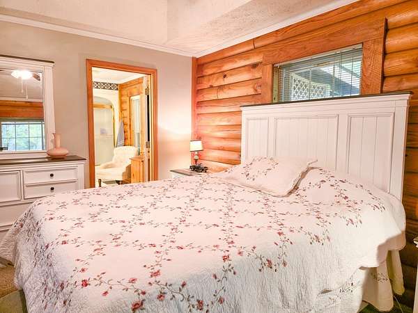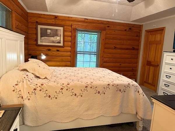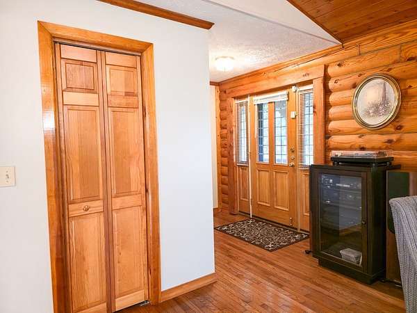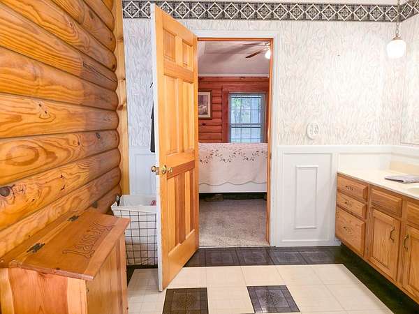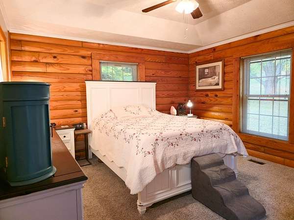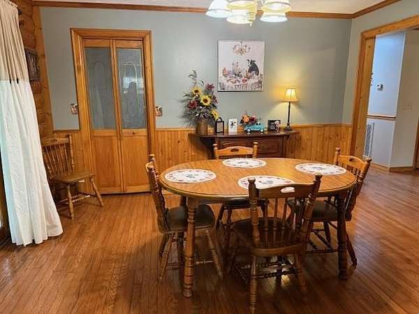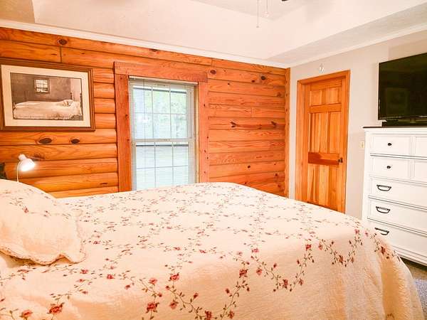 Welcome to this beautiful 3-bedroom, 2-bath log home nestled on 4.2 peaceful acres in Tazewell County, VA! From the moment you arrive, you'll be charmed by the inviting covered front porch, perfect for relaxing and taking in the scenic surroundings. Step inside to a quaint foyer that flows seamlessly into the spacious living room, featuring warm wood floors, two ceiling fans, a stone fireplace with wood stove, and a stunning vaulted wood ceiling that enhances the rustic charm of the home. The dining room continues the theme with wood flooring, chair rail, wainscoting, crown molding, and atrium doors that open to a covered rear porch-an ideal spot for entertaining or enjoying the quiet countryside. The kitchen has been nicely updated with new countertops, refinished cabinets, and newer appliances including a dishwasher and refrigerator, plus a range and microwave. The vinyl tile flooring adds easy maintenance and modern comfort. The primary bedroom offers a cozy retreat with carpet flooring, a tray ceiling, ceiling fan, crown molding, and a walk-in closet. The ensuite bathroom features vinyl tile flooring, a tub/shower combo, large vanity, and a linen closet. The second and third bedrooms also have carpet flooring, closets, and beautiful trim details. The full hall bathroom includes a tub/shower combo, vanity, and vinyl tile floors. Throughout the home, you'll find gorgeous wood accents, insulated windows, and gutters. Additional features include a heat pump, UV light on the well, and a private septic system. Out back, enjoy the covered rear porch with a ceiling fan for added comfort, which leads to an open deck-perfect for outdoor gatherings or soaking in the peaceful setting. There is also an old home on the property currently used for storage, being sold AS-IS. This log home offers the perfect blend of rustic charm and modern comfort-all in a serene country setting. Don't miss your chance to make this slice of Virginia countryside your own!