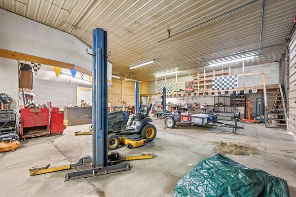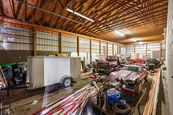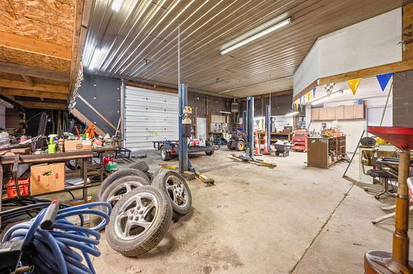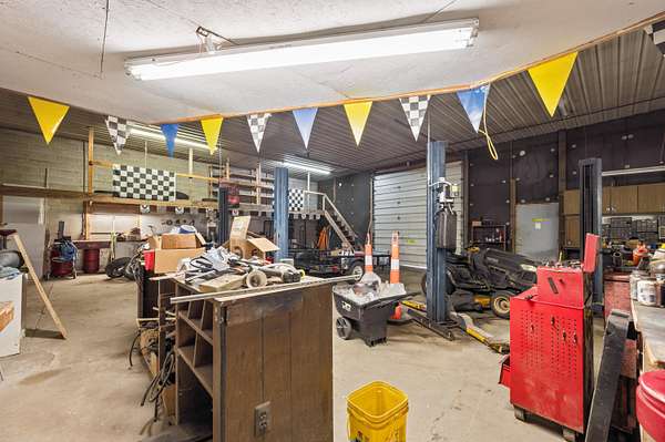 Take a look! This versatile opportunity could be a fit for many purposes and uses, and must be seen to be appreciated. Over 6000 square feet of a mixture of finished potential living/office space, workshop space and a massive storage/shop space that can easily handle large trucks or RV's. Inside, there is almost 1000 square feet of finished and forced-air heated area, complete with multiple living/office rooms, and two bathrooms, very close to being ready to serve as a small apartment or residence. Large overhead doors from front and back and multiple (partially heated) shop spaces are waiting to serve your business or enterprise dream. The almost 3 acres of ground is located just north of the city on a paved road, minutes from HWY 131 and easily accessed from north and south. Modern septic and well in place! Come and set up your tour!