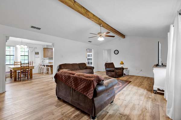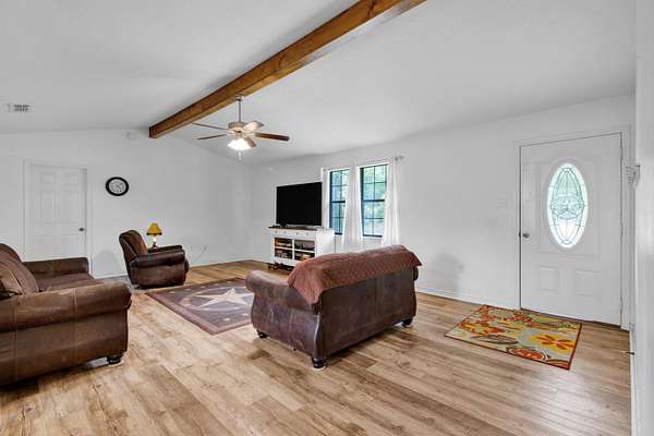 Well-maintained 3-bedroom, 2-bath home situated on 1.9 acres, offering the perfect blend of space, functionality, and country living. With 1,827 square feet, this home features an open-concept layout, updated flooring, and a spacious living area highlighted by a wood beam accent ceiling. The kitchen offers ample cabinet space, a functional layout, and flows seamlessly into the dining area ideal for everyday living or entertaining. The oversized primary suite provides plenty of room to unwind, along with a large bathroom featuring both a soaking tub and separate shower. Outside, you’ll find a 30x40 shop perfect for storage, hobbies, or equipment along with plenty of room to spread out and enjoy the outdoors.