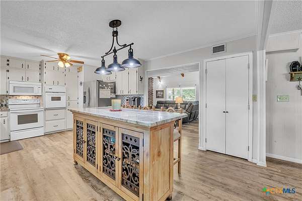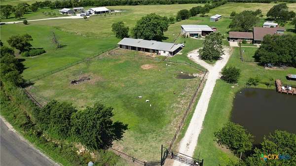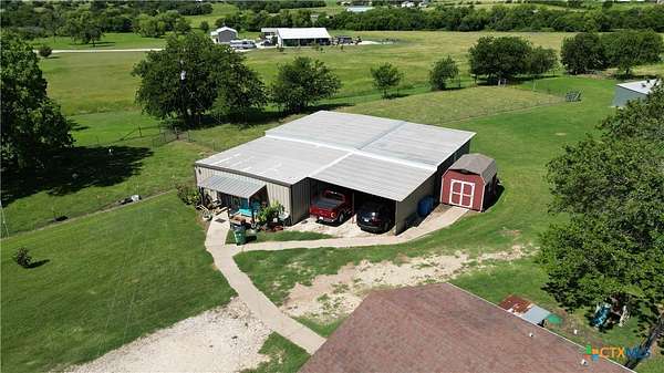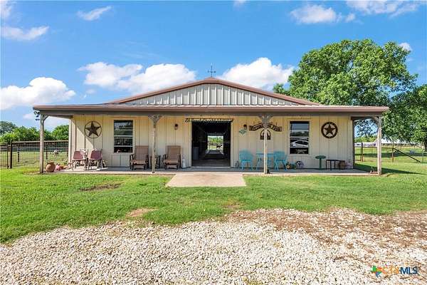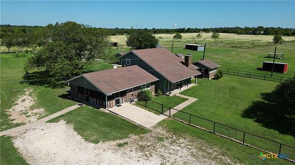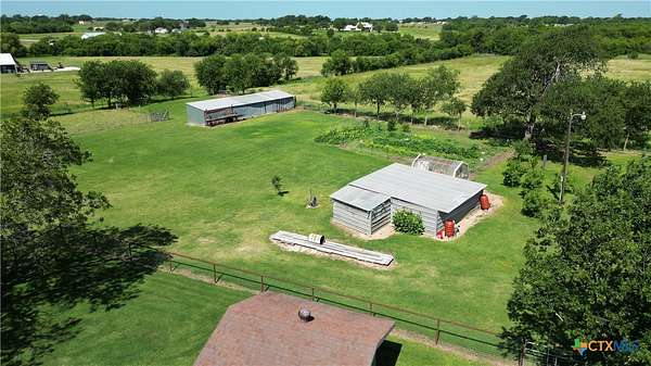 12.26-acre property designed for the ultimate country living experience.18 miles toTemple,Tx.11 minutes from I 35.This property has so much to offer Barns, Guest Suites, Workshops, 4 Lein too, Stalls, equipment barns, Chicken Coops, Duck Coops, Garden areas, Green Houses, Stock tanks, Crossed Fenced,Coastal Pasture, Storm Cellar. Separate guest house w Mini Split AC, full bathroom, Kitchette area, washer dryer area and open floor plan.Or use as an office space or Heated Cooled Workshop, hobby shop, or Man Cave. 5 covered parking areas for boats, campers, trailers, vehicles, or farm equipment. 2,406 sq ft, 5-bedroom, 3-bathroom all-brick home. Open kitchen, extra large living area featuring vaulted ceilings and a cozy fireplace. Separate access to large office area, hobby room , or game room.HVAC less than 5 years old, New roof, New windows, New Gutters, New Water Heaters and Cleaned Ductwork. Outdoor shower, Storm Cellar. 2 enclosed screened in porches. Barn -20 adjustable size stalls and 2 tack rooms, Office,Wash Room with Hot Water Heater New Electrical and Plumb in barn. Stalls are equipped with plugs for fans .Water lines ran to stall areas. Concrete Alley way. Each side of Stables open up to a separate Paddock area or catch pens.Cross-fenced with multiple paddock pastures, providing ample space for horses, cattle, or other livestock to rotate pastures for optimal grazing. Separate Water shut off to barn. Separate Electrical meter for barn, Guest House, shop area. Each crossed fence area has the availability to water and a lein too or equipment stall.10 acre Coastal hay pasture, Last yr 515 square bales,23 round bales production.3 separate farm equipment barns. Garden area, Rain Harvest system, green house, Equipment Barn, water faucet, electrical outlets and Fruit Trees. Chicken houses for each stage, brooder box, coop and run for older chickens, Nesting coop equipped with electric and water faucet. Catch catfish from your beautiful built dock at stock tank.