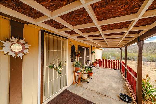 Welcome to 18488 Golf Course Avenue in Wikieup, Arizona your chance to own two homes on over five acres with big-sky views, abundant space, and the perfect blend of privacy and convenience. Located less than a mile from restaurants, gas, and the center of town, this versatile property sits just off Hwy 93/I-11, offering easy access while still feeling peaceful and rural. MAIN HOME: TWO OVERSIZED COVERED PATIOS and a well-kept 2000 double-wide at the rear of the property overlooking the Big Sandy Wash with beautiful views of Cholla Canyon. An expansive, full-length covered back patio provides shaded outdoor living space and takes full advantage of the peaceful desert landscape. Inside, this spacious four-bedroom home features vaulted ceilings, large windows, a living room PLUS family room, split floor plan, two full bathrooms, indoor laundry, kitchen island, and casual dining. Updates include: newer appliances, all of which convey along with a newer well pump and water heater. The perimeter has fencing, some cross-fencing, a chicken coop, a triple carport, and a detached garage and 3 car-carport. The guest house, also a manufactured home, sits closer to the highway and is currently leased, providing immediate rental income. This two-bedroom, two-bath residence includes a split floor plan, indoor laundry, covered front and rear patios, and carport parking. The current rent of $700/month offers excellent mortgage offset, seasonal presence, or investment potential, ideal for multi-generational living or anyone needing a home plus an income-producing dwelling. Property has a plentiful well, connected to city electric, features propane cooking, indoor laundry, walk-in closets, covered outdoor living spaces, and reliable internet & cell service. At approximately 2,000 feet elevation, the land offers mild climate, room for RVs, horses, cows, chickens, off-road vehicles, storage, and homestead living. Partial fencing helps keep open-range cattle out of the primary yard areas. Located about 45 minutes to Kingman, 1 hour to Wickenburg, 1.5 hours to Needles or Sun city/Phoenix area, and a little over 2 hours to Las Vegas. Ideal location for year-round living, a seasonal retreat, a family compound, or a working mini-farm. A rare chance to own two homes, five acres, and the best of rural Arizona living on one versatile property.