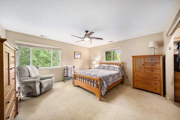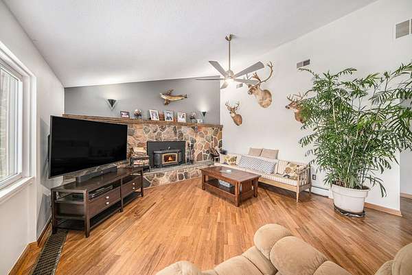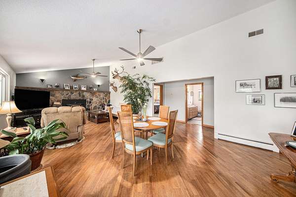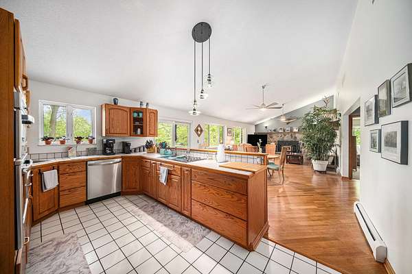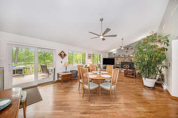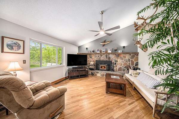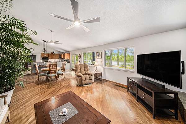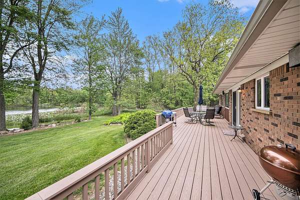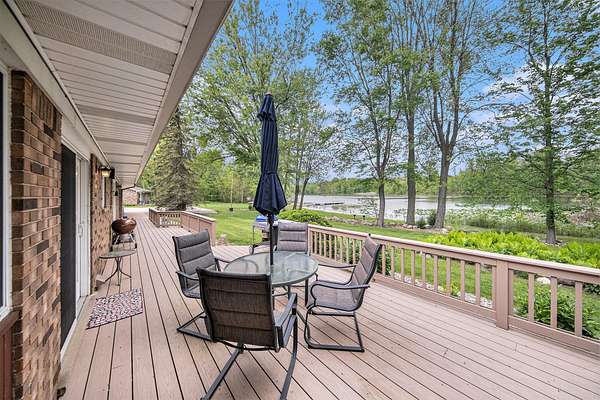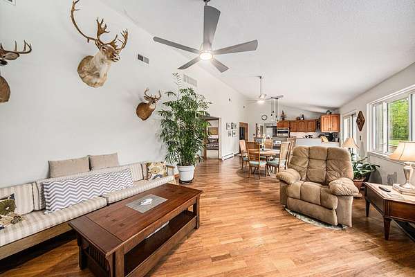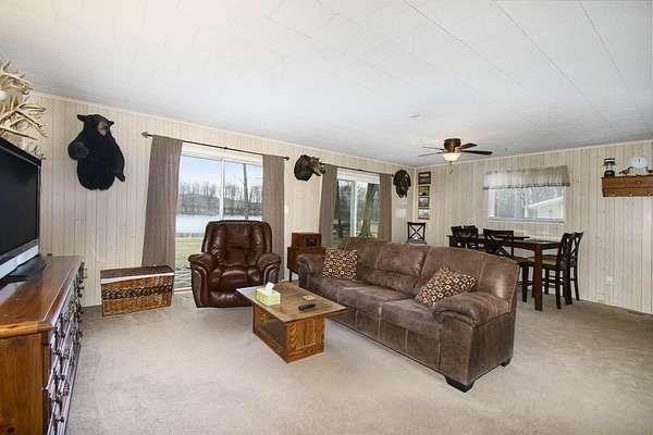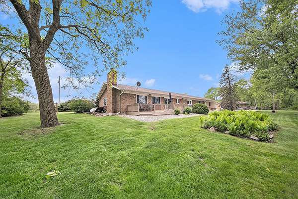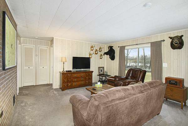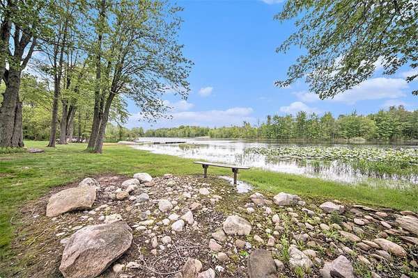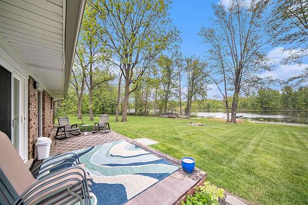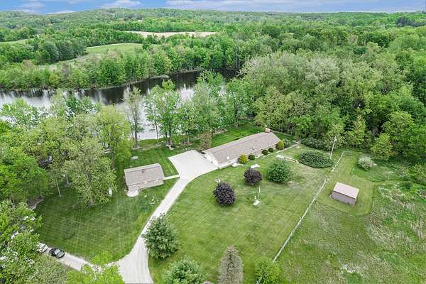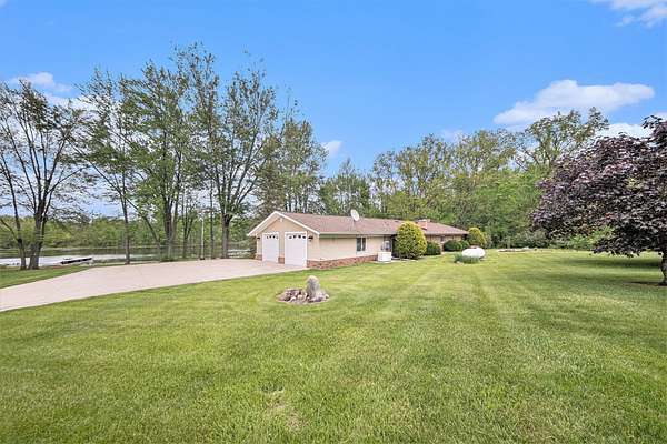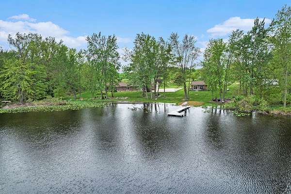 A long gravel driveway winds across 10 private acres and leads to a rare lakefront opportunity-two separate ranch-style homes on the shores of Half-Moon Lake. This unique property offers both space and flexibility for multi-generational living, guests, or rental potential. The main home features 2,304 sq ft with 3 beds and 3 full baths. Open concept kitchen is perfect for entertaining & large windows provide abundant natural light and stunning lake views. Attached 2-car garage and whole-house backup generator add function and peace of mind. The second home offers 936 sq ft, with 2 bedrooms and 1 full bath-ideal for in-laws, guests, or independent kids needing their own space. A true lakeside retreat with room to grow-don't miss this versatile and scenic property.