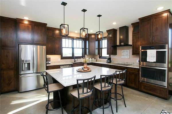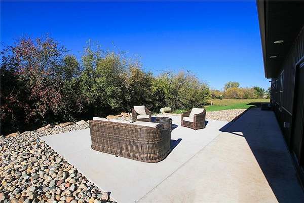 Spacious 40x60 heated garage with 16' sidewalls, finished interior, and mezzanine -- ideal for hobbies, storage, or business. Maintenance-free exterior for easy living. Granite kitchen island & counters, stainless steel appliances, and built-in double oven. 9' ceilings, in-floor heat throughout, and a luxurious owners suite with double sinks & walk-in closet. 6'x57' front porch and 18'x18' concrete patio overlooking the river -- perfect for relaxing or entertaining. Irrigated landscaping with concrete curbing for a polished look. Private & Peaceful Setting. Enjoy the beauty of nature from your own backyard with panoramic river views and space to roam. Whether you're hosting guests or soaking in the quiet, this home delivers comfort and style in every detail. Close to town, far from ordinary. This is more than a home -- it's a lifestyle. Come see why this property is turning heads.