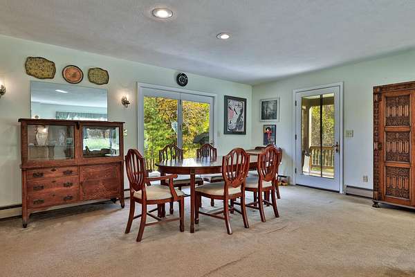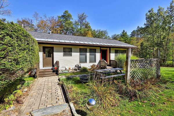 Set on three peaceful acres just minutes from the historic village of Rochester, this expanded ranch offers generous living space in a lovely private setting. Amble past a historic farm along a quiet country road to the inviting homesite, perched above the White River valley. The sunny, level lot provides an ideal backdrop for gardening, recreation, and outdoor gatherings. Inside, a large open floor plan creates a perfect space for entertaining and relaxing with family and friends. The main level features a primary suite with an updated bath, a guest bedroom or office, a convenient mudroom/laundry room, and a wraparound deck for grilling, al fresco dining, or simply taking in the tranquil surroundings. The fully finished walkout level nearly doubles the living space, offering an expansive family room with wet bar, two additional bedrooms, a bath, and two versatile flex rooms. Practical, comfortable, and inviting, this home is ideal for both year-round living and peaceful retirement. In the heart of the Green Mountains, you'll enjoy easy access to skiing, hiking, fishing, biking, and snowmobiling--everything that makes Vermont living so special. Schedule your private showing today and discover the perfect country retreat.