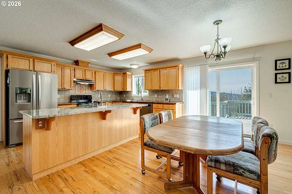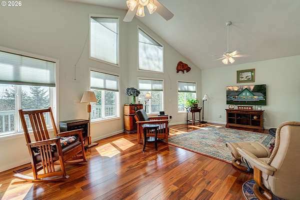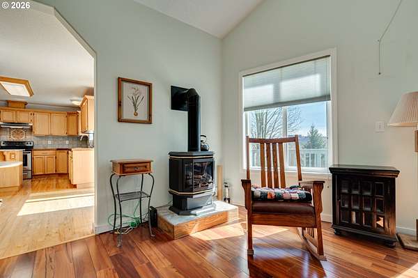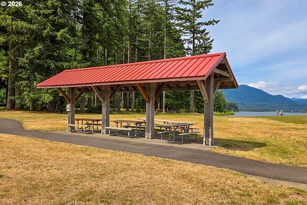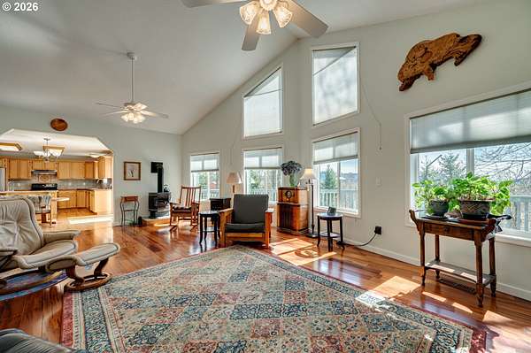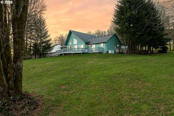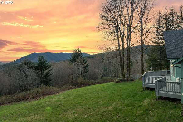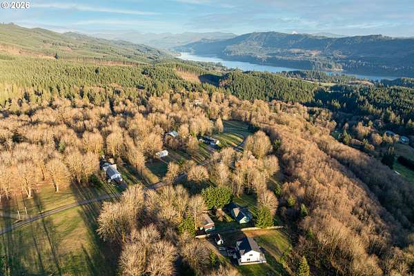 Est $3,501/moA-frame style living with expansive windows and natural light throughout. This custom 3 bed, 2 bath home sits on 5 private and usable acres. Open concept layout with 15' vaulted ceilings creates a bright, airy feel. Kitchen features granite counters, an island with a second sink, and a walk-in pantry. Dining opens to a large deck with peaceful views. Detached oversized garage with workshop space, and RV parking with hookups. Whole-house generator, forced-air heating and A/C, and a cozy propane fireplace. Close to Merwin Park, hiking, fishing, and more!