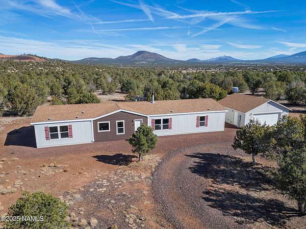 Tucked away on 10 peaceful acres of Northern Arizona countryside, this home offers the perfect blend of country/modern comfort and peaceful, wide-open living. The open and updated floor plan gives the home a warm, inviting feel, while large windows frame cascading views of distant mountain ridges, and endless blue skies that stretch for miles. With 4 bedrooms, 2 baths, a walk-in pantry, and a split floorplan, the space feels roomy and comfortable. Everywhere you look, you're reminded of why people fall in love with Williams - the big, quiet spaces, the crisp mountain air, and the ever-changing light that makes every sunrise and sunset something to pause for. You can spend hours outside watching the birds, taking in the views, or simply enjoying the stillness of nature all around you. Though it feels private and secluded, you're just 10 minutes from downtown Williams and an easy 40-minute drive to Flagstaff. The oversized garage is perfect for hobbies, projects, or storing your outdoor toys so you can make the most of life in Northern Arizona. If you've been dreaming of a place where you can slow down, spread out, and soak in the beauty of the high country, this home is it.