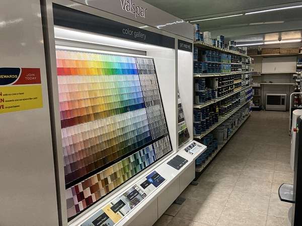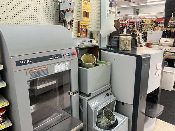 The paint department is fully equipped with an X-Rite computerized color-matching system, supported by multiple one-gallon shakers and a five-gallon shaker. This allows the store to provide professional-grade paint services locally, reducing the need for customers to travel long distances for specialty products. The warehouse supports lumber, insulation, sheetrock, bulk materials, and additional operational inventory, and includes a pipe-threading machine used to service plumbing and construction customers. The lumber yard is efficiently configured with covered ground racks and upright cantilever racks, allowing for organized storage and safe handling of dimensional lumber and building materials.