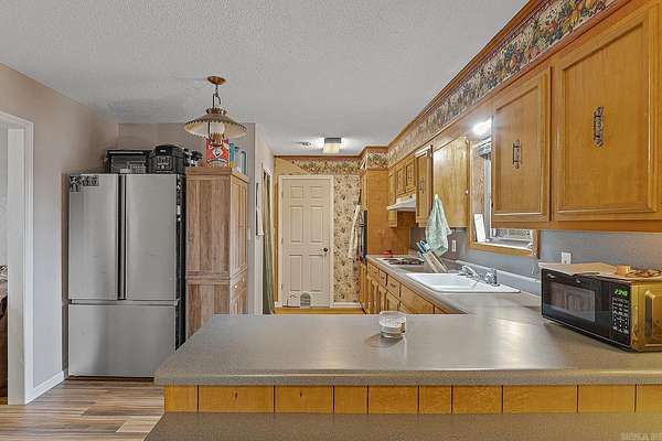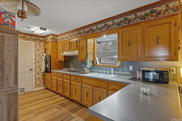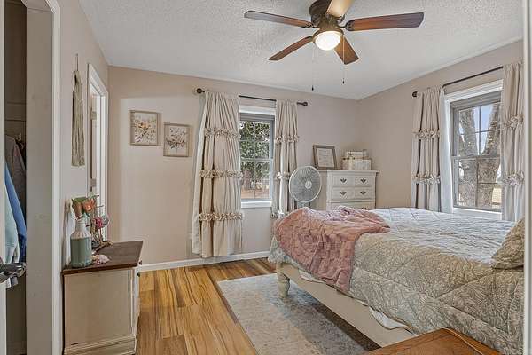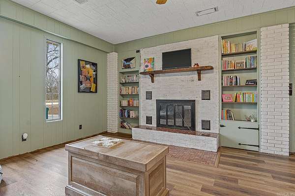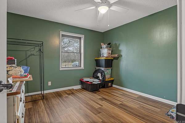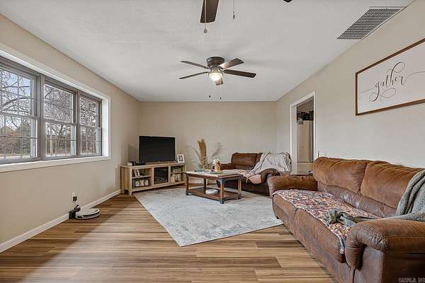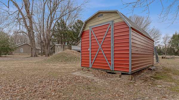 Nestled on 1.55 peaceful acres, this inviting 3-bedroom, 2-bath home offers over 2,000 square feet of comfortable living space. Located just barely off a paved road- with very minimal gravel travel- you'll enjoy a quiet country setting while remaining conveniently accessible. Inside, most of the home has been tastefully updated with fresh paint and new flooring, creating a bright, welcoming feel throughout. The kitchen features new flooring and offers an excellent opportunity for future personalization. A cozy den with a woodburning fireplace, a separate living room, and an additional room at the back of the home provide flexible space for a home office, hobby room, playroom, or second den. Outside, enjoy the land, a shop, storage building, and an outdoor storm shelter for added peace of mind. The roof was replaced in 2022, adding long-term value and durability. With generous square footage, multiple living areas, and practical outbuildings, this property offers space, comfort, and versatility in a peaceful setting. (See agent remarks)
