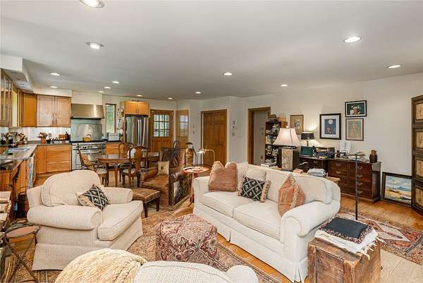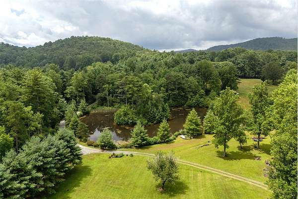 Prime for horses, farming, or creating your private mountain retreat, enjoy 37+ acres at over 3,100 feet. This rare Sapphire, NC estate combines privacy, versatility, and breathtaking natural beauty. Bordered by the Nantahala National Forest, the property includes three unrestricted parcels with residential and agricultural zoning, gently rolling pasture, mature forest, a pond, abundant wildlife, and five wells already in place. A short hike or ride on horseback leads to the scenic Thompson River, making it ideal for equestrian enthusiasts or those seeking a compound or investment opportunity. The residence offers a flexible layout with two bedrooms and three bathrooms, including an attached in-law suite for additional occupants or guests, plus a bonus room. The main living area features an open-concept great room with a wood-burning fireplace, sunroom, separate dining room, and eat-in kitchen, along with a bedroom and two full bathrooms. The attached suite includes its own kitchen, one bedroom, one full bathroom, a spacious office, and a deck overlooking the pasture and pond. Throughout the home, generous closet space and abundant storage keep everything organized. Modern touches include a professional gas stove, underground utilities, and a 3-zone HVAC system for year-round comfort. Beneath the home, two garage bays provide sheltered parking, while the expansive lower-level space-accessed by two full-view garage doors-functions as ATV storage, a workshop, and a potting shed, or can serve as a gathering area. Additional structures include a heated, detached 2-car garage and a barn/workshop to support hobby farming or horses. Located just minutes from Sapphire's dining, golf, and resort amenities, close to Gorges State Park, and within a short drive of Highlands, Cashiers, or Brevard. Travel times are also convenient: just over an hour to Greenville, SC, and less than three hours to Atlanta. This property delivers rare land, location, and elevation for a dream residence, working farm, multi-use retreat, or investment holding.