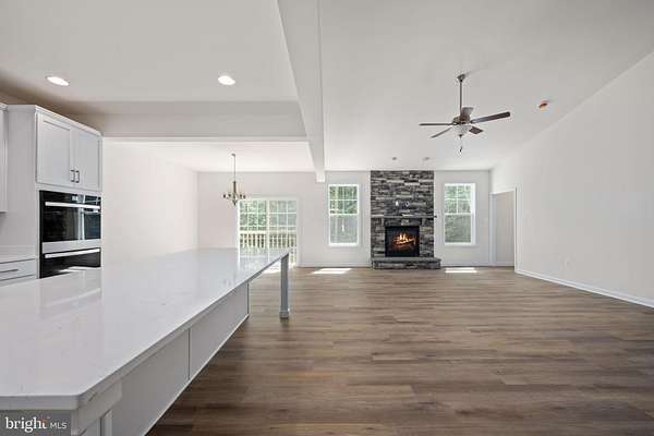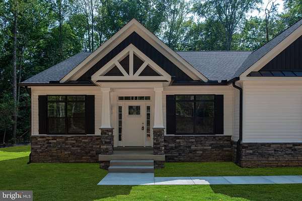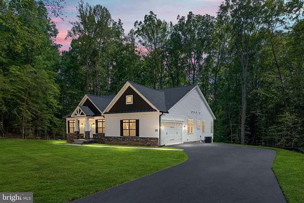 BRAND NEW AND NOW COMPLETE! This 4BR, 3.5BA ranch-style home is now fully available. Sitting on a wooded, 4+ acre lot with NO HOA, this home is very private and has a flat, level rear yard. Inside features vaulted ceilings, and upgraded/designer finishes, including all upgraded flooring throughout the main level with no carpet! The gourmet kitchen features painted cabinetry, quartz counters, stainless steel appliances, a double oven, separate cooktop with full stainless range hood, and a HUGE walk-in pantry. The primary bath has a freestanding tub and heavy glass shower surround. The basement is perfect for entertaining and features a very large finished rec room, full bath, and oversized bedroom with a walk-in closet. Builder to pay up to $7500 towards closing costs with use of a preferred lender.