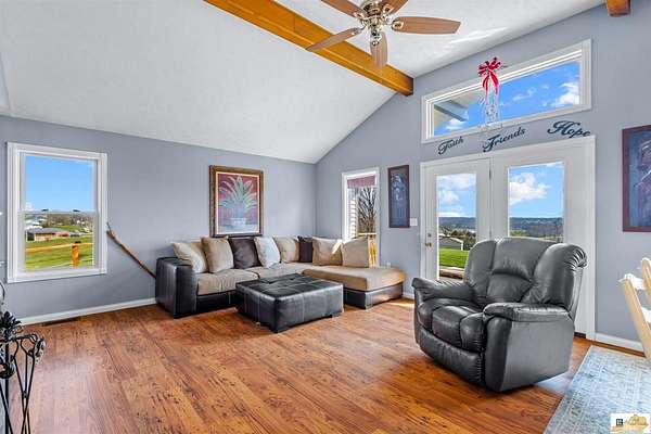 Escape to your own private slice of Kentucky countryside with this beautiful 2 bedroom, 2 full bath home situated on approximately 14 acres in a beautiful country setting with stunning panoramic views. This property offers the perfect blend of comfort, space, and functionality for those seeking a peaceful lifestyle with room to grow. Inside, you’ll find a well-maintained home featuring a functional layout and inviting living spaces. The full basement expands your living area with a second kitchen, spacious living room, and a versatile bonus room—ideal for guests, a home office, or additional flex space. The walk-out basement provides easy access to the outdoors, making it perfect for entertaining or multi-generational living. Step outside and take in the breathtaking scenery and privacy your land provides. With 14 acres, there’s plenty of room for recreation, gardening, or simply enjoying nature. The property also includes a barn and shed, offering excellent storage or potential for hobby farming, animals, or equipment. Whether you’re looking for a quiet retreat, a small farm, or a property with room to expand, this one checks all the boxes. Don’t miss your opportunity to own a piece of Kentucky land with endless possibilities!