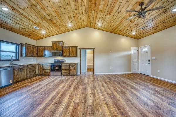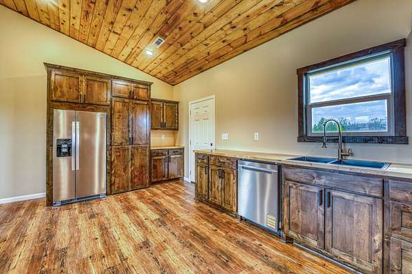 Est $1,312/moBrand new 3 bed, 2 bath home on 1.85 acres with a desirable open floor plan! This 1,344 sq ft home features vaulted ceilings and a beautifully crafted kitchen with custom knotty alder cabinets and brand-new appliances. Just off the kitchen, a functional scullery serves as both pantry and laundry room, adding convenience and extra storage. Enjoy peaceful country living with privacy at the end of the road, all just minutes from the Buffalo National River with easy access to hiking, floating, horseback riding, and outdoor adventure. Don’t miss this new construction opportunity!
