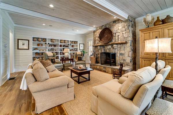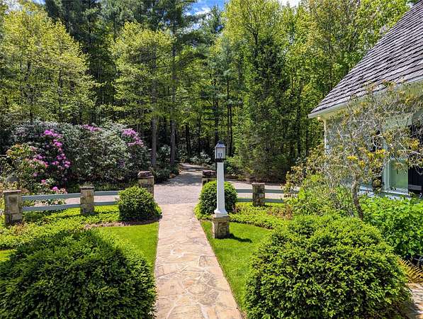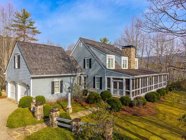 Nestled among private properties, this elegant yet relaxed home, built around 2005, was custom-designed, drawing inspiration from 1905 Cape Cod cottages. As you arrive at this 18.46-acre estate, a gently ascending, sweeping paved driveway leads you to an immaculate lawn, well-maintained landscaping, and a two-car garage. The spacious Carolina Room, which extends the length of the house, doubles as a casual foyer. Inside, you'll find beautiful 300-year-old reclaimed oak floors, shiplap walls, and four stone fireplaces. The kitchen is a chef's dream, featuring Bosch, Wolf, and Thermador appliances, complemented by handcrafted flush cabinetry and granite countertops. Bedrooms are thoughtfully distributed across all three levels for enhanced privacy. The cozy den/game room and stair-nook office offer versatile spaces for various activities. This "Old Sapphire" estate is private and unrestricted, yet conveniently located just a golf shot away from Burlingame Country Club! Additionally, the buyer of this exceptional property has the option to acquire an adjacent 66-acre mountainous parcel.