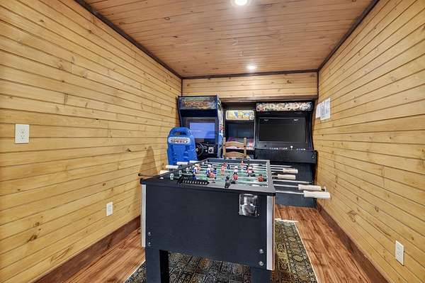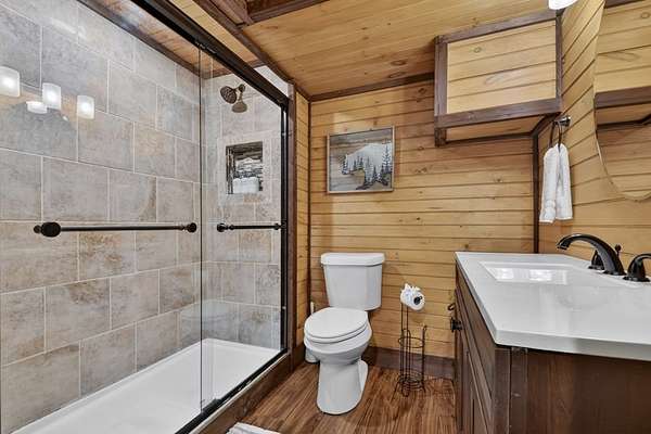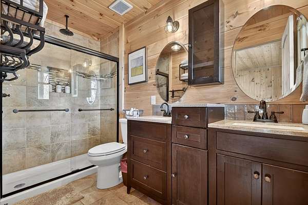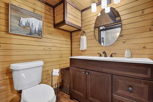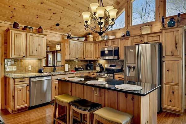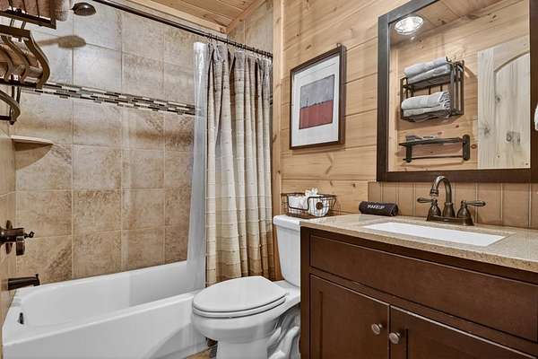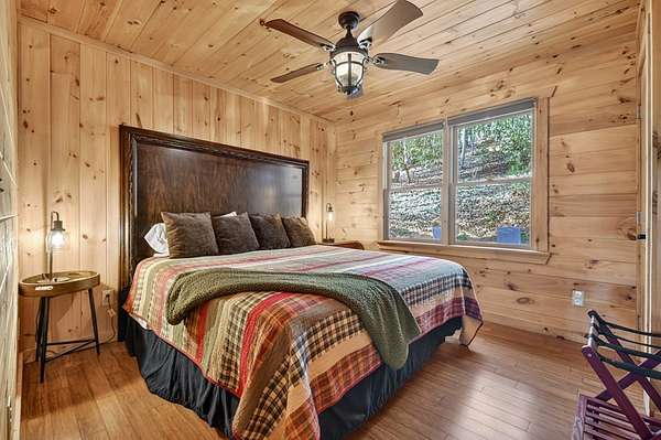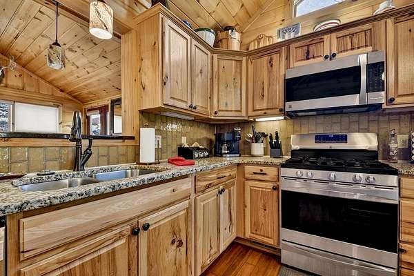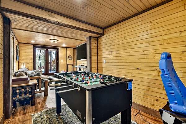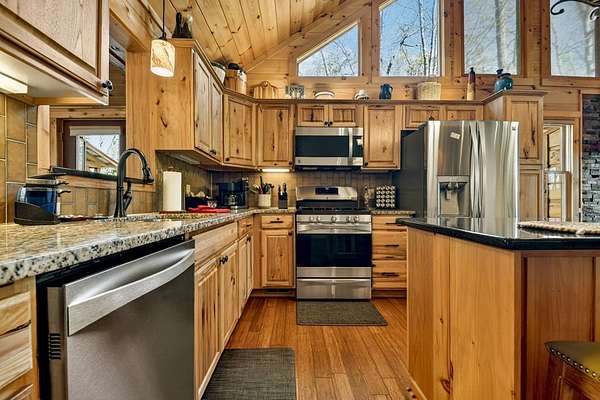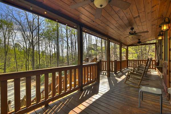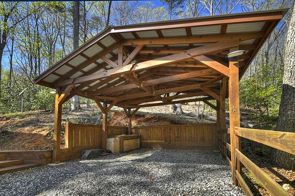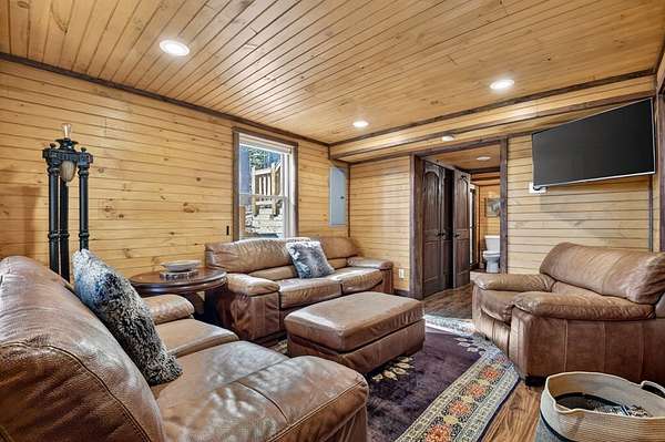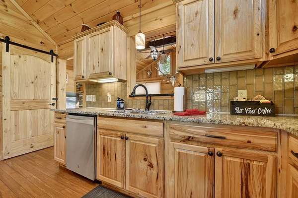 Situated on 1.9 private acres, this furnished mountain home balances comfort and character in a scenic setting. Enjoy seasonal mountain views that enhance the tranquil atmosphere year-round. The home features inviting details such as hickory cabinetry, granite countertops, and a modern tile backsplash. The main level includes two bedrooms and two full bathrooms with ceramic tile floors, tiled showers, and a double vanity for added comfort. On the main floor, a spacious living room with a fireplace and an open dining area—also featuring a fireplace-sits adjacent to the kitchen, making it an ideal space for gatherings. Upstairs, a roomy loft bedroom offers extra sleeping accommodations and character. The lower level provides additional space to unwind, including a bonus bedroom, a game room, and another living area—well-suited for guests or multi-generational households. Step outside and take in the fresh mountain air from covered porches or gather around the fire pit under the stars. The soothing sound of the nearby creek sets the scene for relaxation, including a hot tub ready for you. There is plenty of parking and a convenient carport. Conveniently situated between Blue Ridge and Blairsville, this private property offers a balance of privacy and accessibility. It works well as a full-time home, vacation spot, or potential rental property.