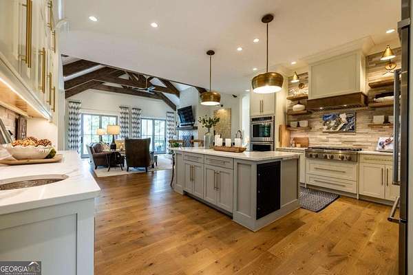 Built in 2021 by the highly respected Brooks Building Group, Inc., this custom home is nestled on 12.45 private, wooded acres in the sought-after Beaver Creek Plantation. With 3 bedrooms and 2.5 baths, it showcases exceptional craftsmanship, thoughtful design, and quality natural materials throughout. As part of the neighborhood, you'll also enjoy access to a private, spring-fed, approximately 5-acre lake stocked with fish. From the moment you step through the custom iron-and-glass arched front door, it's clear that every detail has been carefully considered. The open main level is designed for everyday comfort and effortless entertaining, featuring 9" character-grade white oak floors, 10' ceilings, detailed cove molding, and designer lighting. The chef's kitchen, anchored by custom cabinetry from Billy Crawford, includes solid quartz countertops, a built-in refrigerator, 6-burner gas cooktop, double ovens, warming drawer, ice maker, beverage fridge, and an oversized walk-in pantry. Just off the kitchen, the dining area offers a generous space for gathering. The primary suite offers peaceful views and a spa-like bathroom with heated marble floors and a fully customized California Closet. All secondary closets are also wood-built. A large laundry room adds functionality, while a screened-in porch with a gas fireplace provides a comfortable retreat year-round. Custom faux finishes in the study and powder room add an artistic touch. Downstairs, you'll find two additional bedrooms and a beautifully finished full bathroom. A large unfinished area provides the flexibility to create additional living space-ideal for a home theater, fitness room, workshop, or hobby space. Constructed with enduring materials like thick natural stone and wood (no manmade siding), the home also features Marvin windows, solid wood interior and exterior doors, spray foam insulation, three HVAC units, two tankless water heaters, and a dehumidifier. A backup generator supports the main floor HVAC system, water heater, refrigerator, and select kitchen appliances-designed to keep essential systems running comfortably during a power outage. The landscape plan was professionally designed by Watters & Associates and complements the setting, while raised garden beds and a custom-built shed add extra functionality to the property. Private, peaceful, and impeccably executed, this exceptional property is shown by appointment only.