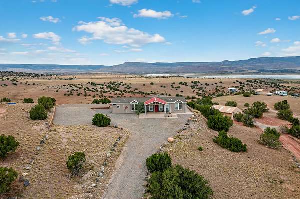 This home and its location has it all! When you have a place that has majestic views in all directions, your choices of where you sit and relax makes it exciting. The setting is incredible, Views to the north at the red rocks that are near the Ghost Ranch, the Canjilon Mountains farther north and the Comanche Canyon to the N East, and then the Sangre de Cristo to the east, the small mountains that are on either side of the Abiquiu Dam, and there is the Prominent Predenal Mountain. Magnificent as it stands proud as it can be seen from far away.This property is overlooking Abiquiu Lake and Mesa de Las Viejos, the walls of this Mesas offer a geologic time chart displaying different colors of strata. The view changes according to how the sun reflects on it.