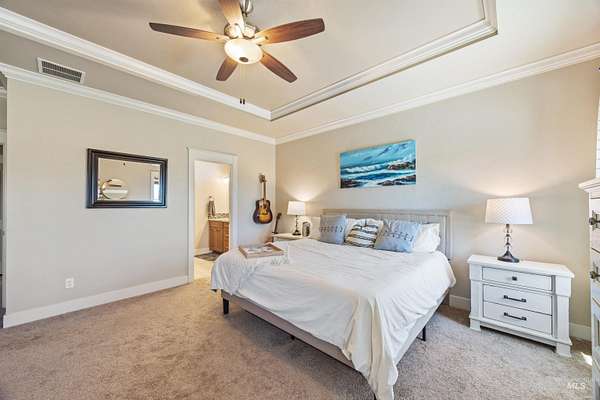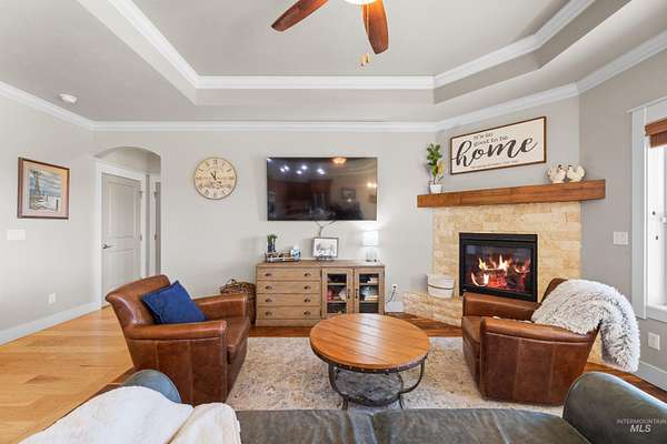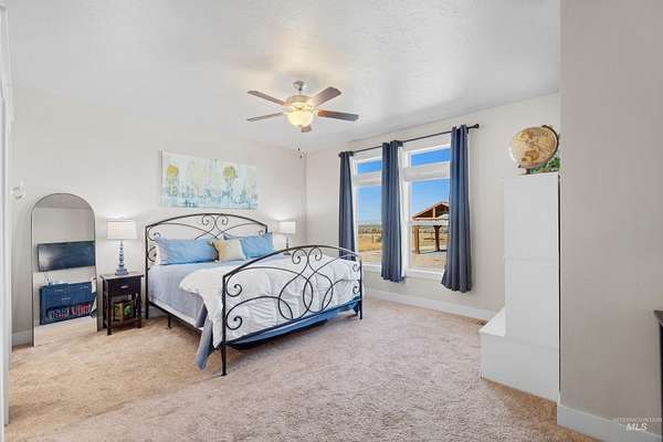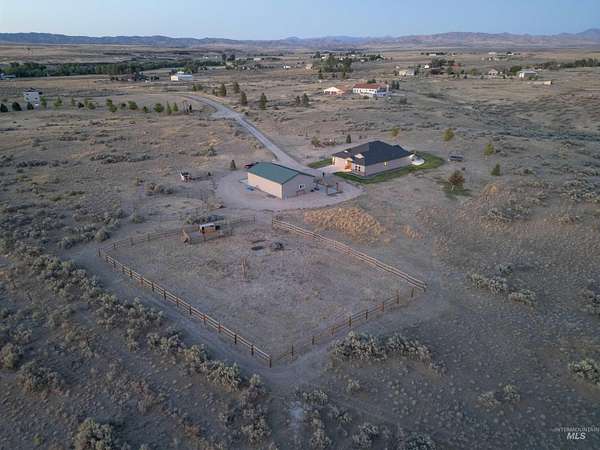 Welcome HOME to your very own sprawling estate 15 minutes from Boise in the up-and-coming community of Mayfield. This beautiful single level home sits on over 11.5 acres of rolling topography and tucked less than 2 miles off the I-84 exit. Enjoy your panoramic sunrises and sets from the shaded pergola on the large back patio or relaxing in the hot tub. This home has 2 large primary suites with walk in closets or for use as a private guest retreat with the split bedroom plan. Beautiful new shower in the NE suite. The tray ceilings and tall doors draw your gaze up and there's a large open living area for gathering around the fireplace. The kitchen has ample counter space with the large island, a desk nook and a big walk-in pantry for plenty of storage. High quality water filtration system included. The large, insulated shop can hold at least 3 more vehicles with room left for a hobbies, additional gathering space, storage or farm supplies. RV parking on the side slab and additional covered parking out front with a wraparound driveway. Bring your green thumb and enjoy the raised garden beds, orchard and new sprinkler system. Imagine your horses, goats, chickens and hobby farm dreams. This property has been meticulously maintained.