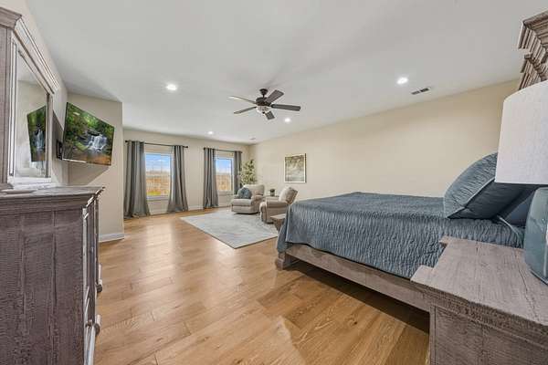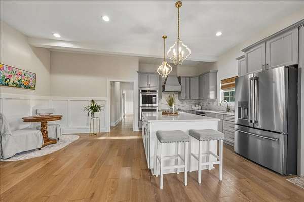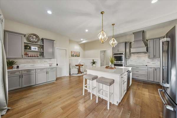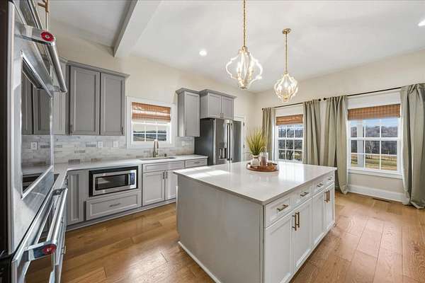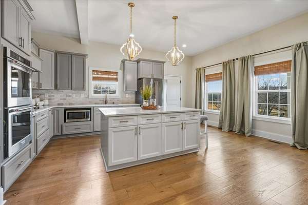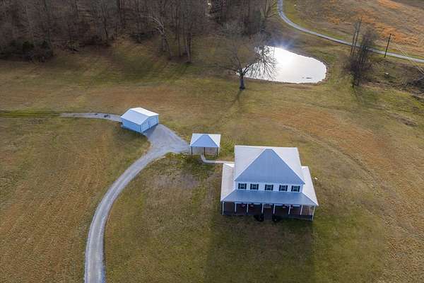 First time to view: SATURDAY FEB 21st PUBLIC OPEN HOUSE 1-4pm Escape the city and enjoy unparalleled sunrise and sunset views from the wrap around porch of this classy custom farmhouse located at 185 Thompson Road. Embrace country living and take in the rolling hills of Dickson County. At the heart of this 11.67 acre property sits a custom-built 3520 sq ft farmhouse built in 2021 plus 2 ponds. This warm and inviting home offers spacious rooms, tons of storage closets, gorgeous hardwoods,10ft ceilings on main level and dedicated office space. A large open kitchen featuring quartz countertops with under cabinet lighting, large island, double oven and built in microwave, massive dreamy walk in pantry plus a dedicated space for your morning expresso bar. This peaceful country sanctuary has it all. Come and see for yourself!
