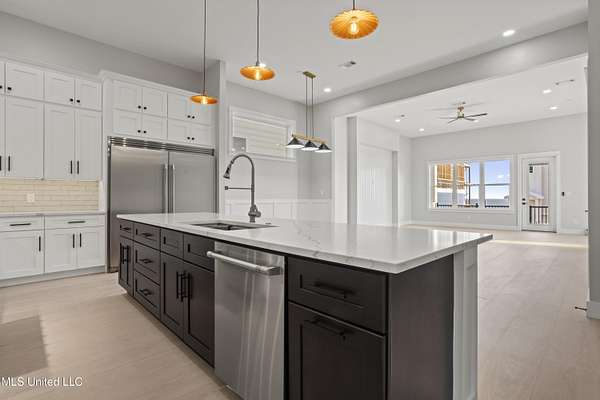 Introducing the First Sand Beach Homes in Biloxi, offering a range of custom features. These homes boast high ceilings, a fireplace, 8' doors, and 12' ceilings on the first floor. They feature engineered wood floors, Shaker-style custom cabinets, and ceramic-tiled bathrooms and showers. Enjoy the benefits of PGT hurricane-resistant windows and doors with impact glass, as well as a Gold Fortified rating. Additional highlights include a custom iron front door, glass railings, 2x6 interior walls with R-21 insulation, and an R-30 open-cell foam roof and ceiling. The homes also come equipped with two on-demand hot water heaters, an optional elevator, and a private pool is optional. Short term rental approved. Colors, finishes, and fixtures may vary per unit. Professional photos to come once completed!