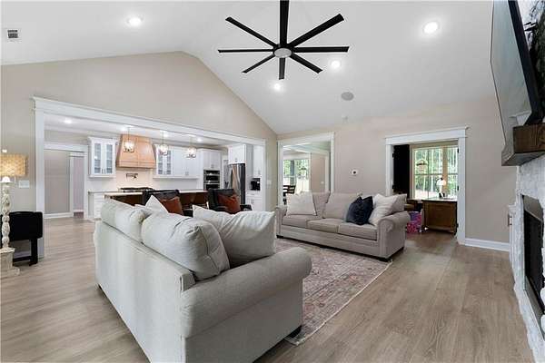 No detail was overlooked -- from the thoughtfully chosen fixtures to the flawless layout that balances open-concept living with private, cozy spaces. Enjoy a gourmet kitchen, spa-inspired bathrooms, and spacious bedrooms designed for relaxation. Outside, a 30x50 concrete pad with water and power offers endless possibilities for a workshop, guest house, or outdoor entertainment space. The oversized 3-car garage provides ample storage for vehicles, tools, or toys. No need to worry--this home is equipped with a powerful 26kW whole-house Generac generator to keep everything running smoothly during any power outage.