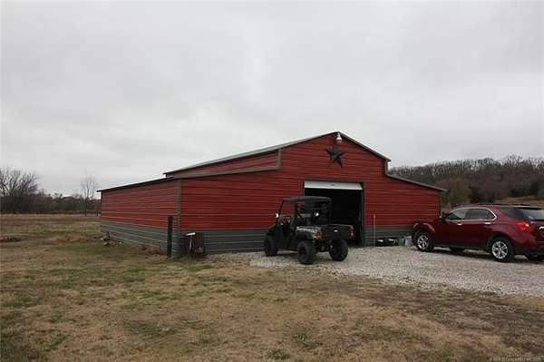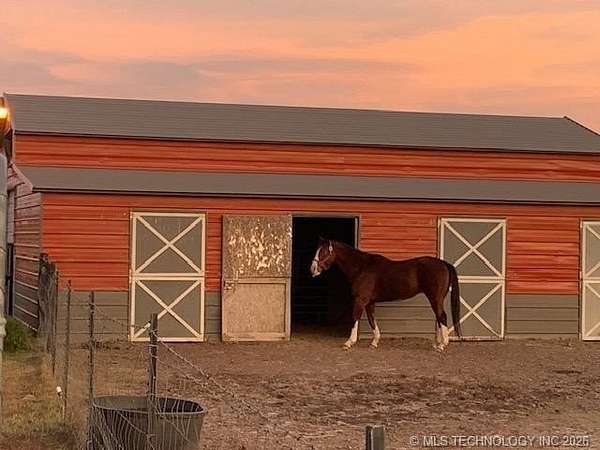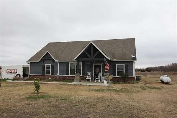 Enjoy the country life in this beautiful home on 10 acres just 35 minutes from Downtown Tulsa. Short drive to shopping and restaurants. Incredibly scenic area with a lot of charm, and ready for your horses! Property is fenced and cross fenced.4 stall horse barn with tack room, and an additional cow shed in west pasture. No livestock restrictions. Covered patio and front porch for watching the sunrise or sunsets! Enjoy firepit in a peaceful, quiet setting. Privacy. Excellent neighbors, and very safe area New exterior paint last Spring. Tons of attic storage. Open Floor plan.