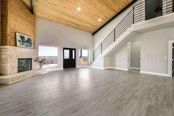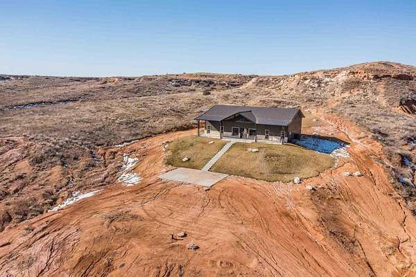 Outdoorsman's Dream! Stunning barndominium nestled on 38.55 picturesque acres of serene countryside outside of Valle de Oro. This home boasts a spacious and inviting open-concept design, seamlessly blending the kitchen, living, & dining areas-gorgeous cedar ceilings & Austin-stone fireplace! Four generously sized bedrooms, 3 well-appointed bathrooms and an office, this property offers plenty of space for comfort & functionality. Step outside to the expansive porches, where you'll be greeted with breathtaking views of the sunrise, sunset and the Amarillo skyline. A tranquil spring-fed pond graces the property, visible from the porch, adding to the charm and natural beauty of the landscape. Perfect honey hole and only 30 miles from Amarillo. Two wells on property. Truly one-of-a-kind!! Whether you're seeking peaceful country living or a place to create unforgettable memories, this barndominium on 38.55 acres offers it all. Don't miss the opportunity to make this dream property your reality!