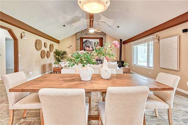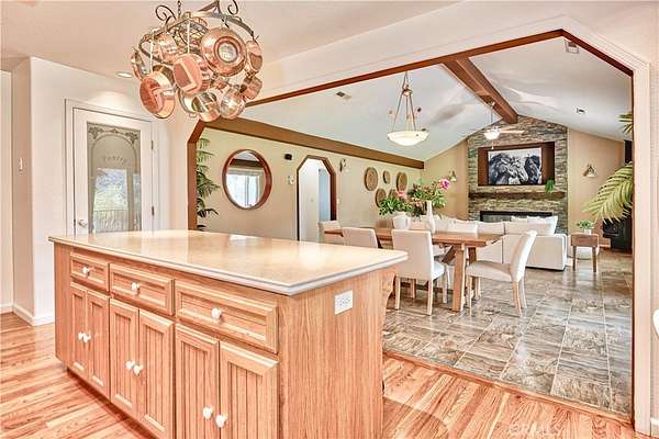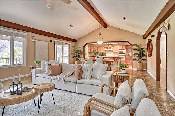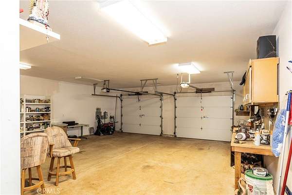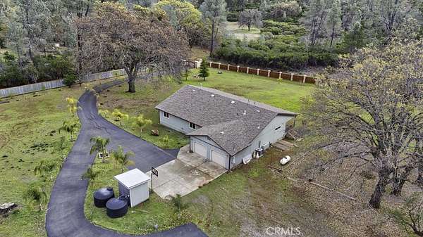 Enter through grand custom gates and follow the palm-lined asphalt drive to your own private retreat, set on over two fully fenced acres with stunning mountain views. This beautifully maintained custom home offers 2,196 square feet with 3 bedrooms and 2 bathrooms. Enjoy a spacious kitchen with a center island and tile backsplash, an open layout perfect for entertaining, central heat and air, and a durable 40-year composition roof. A new well, paired with a 3,000-gallon water storage system, provides added convenience and peace of mind. The impressive detached workshop is a true standout — ideal for a serious hobbyist, car enthusiast, or contractor — offering remarkable flexibility. Complete with an attached 2-car garage, expansive covered porch, and abundant parking, this property combines privacy, functionality, and lifestyle in one exceptional package.