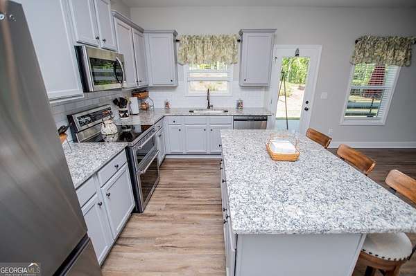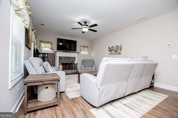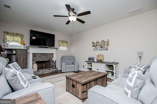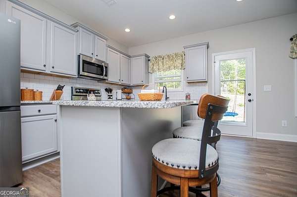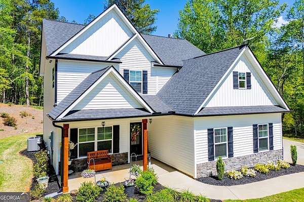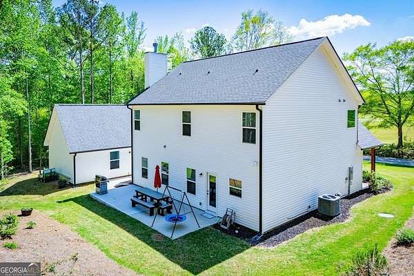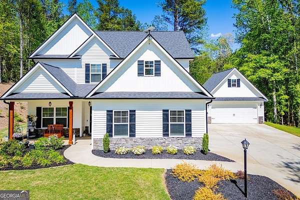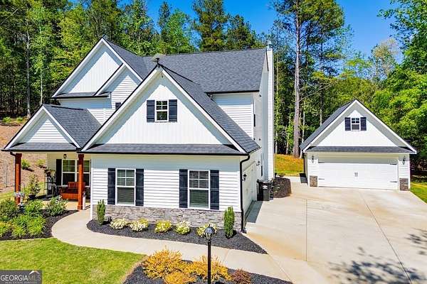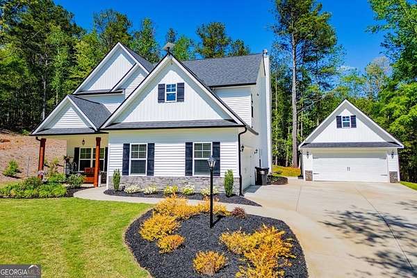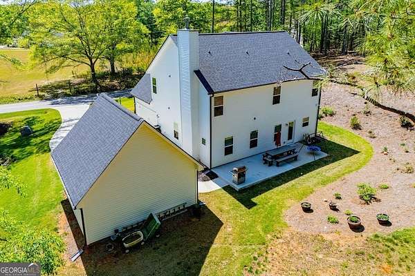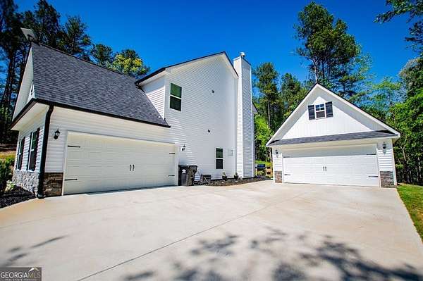 Welcome to this like-new 4-bedroom, 3-bath home situated on 1.9 very private acres, offering the perfect blend of comfort, space, and modern living. Only 2 years old, this home provides the benefits of new construction without the wait. The open-concept floor plan features a spacious kitchen with stainless steel appliances, granite countertops, and a large island bar. Ideal for entertaining and everyday living. Enjoy gatherings in the separate dining room and relax in the inviting living room, complete with a cozy fireplace. The large primary suite offers a peaceful retreat with ample space and comfort. Additional highlights include an attached 2-car garage plus a separate detached 2-car garage, perfect for extra vehicles, a workshop, or additional storage. Step outside to a large patio overlooking the private surroundings. Ideal for relaxing, entertaining, and enjoying the quiet setting.