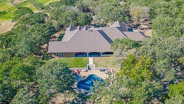 Build your own shop or barn. Beautiful, one owner home nestled among many trees, this family sized, custom home is situated on 14 ag exempt acres. Upon entering the home, one sees the view of the large covered patio, pool and trees! The home features a huge kitchen with wrap around bar for 8+ bar stools, four bedrooms, all with en suite baths, an over sized gameroom with bathroom leading to pool area, office with double built in desks, a pantry that has room for secondary refrigerator and freezer as well as an oversized 2 car garage with a golf cart or mower garage and 2 car carport. The home is very secluded yet close to town with easy access to Granbury and Stephenville. One of the secondary bedrooms is ADA accessible. The property is gated, fenced and cross fenced for your livestock needs. Roof is only 2 years old! Come see all this property has to offer in the coveted Tolar Independent School District.