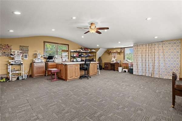 - Ceiling Fan(s), Central Vacuum, Custom Cabinets, Kitchen Island, Pantry, Vaulted Ceiling(s), Walk-In Closet(s)