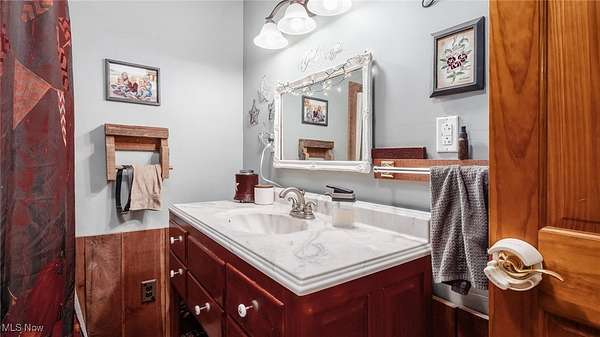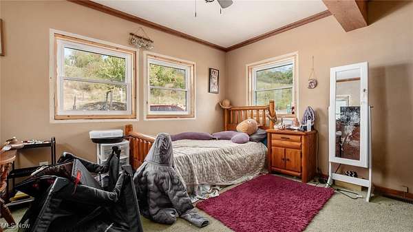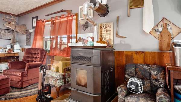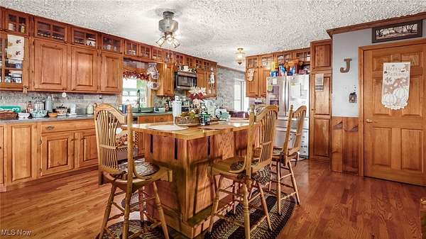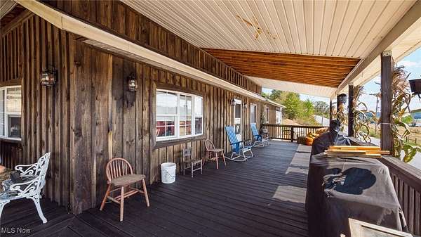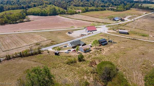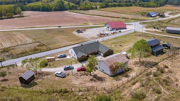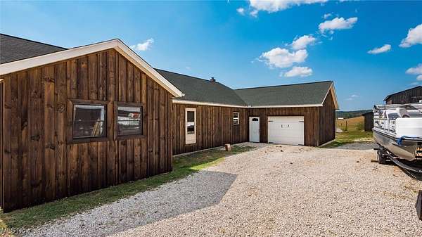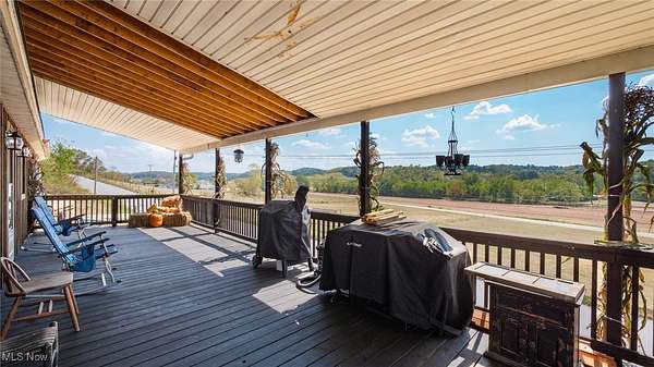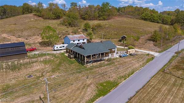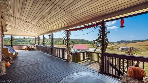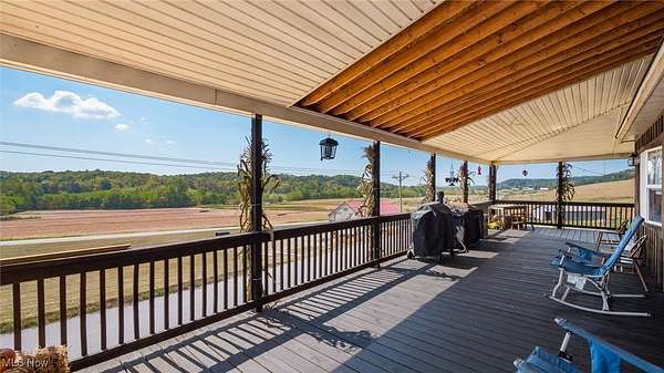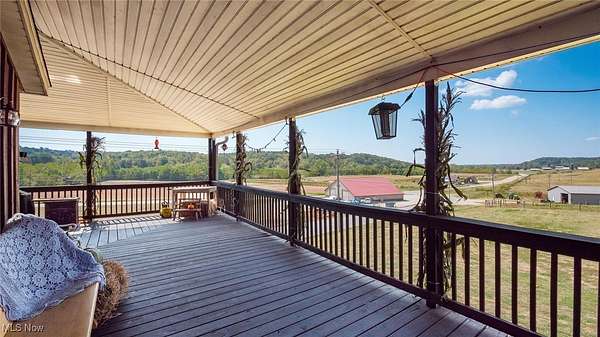 Enjoy country living on this 10-acre farm featuring fenced pastures and a well-kept hen house-ideal for livestock, horses, or hobby farming. This 5-bedroom, 2-bath home offers an open kitchen with oak cabinets, hardwood floors, and a large island. The primary suite includes a walk-in closet, a jet tub, and a walk-in shower. Most of the windows throughout the home have been replaced, adding comfort and efficiency. Recent updates also include new wood siding and new roofs on both the home and the barn. Outdoor living is enhanced by a wide covered deck and a brick patio with beautiful views. The property also offers a barn, a 3-bay open garage, and a basement plumbed for additional living space. Siding and window trim will be completed before transfer.