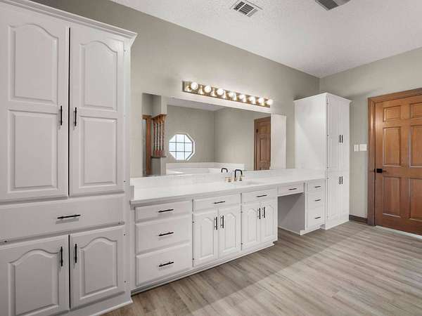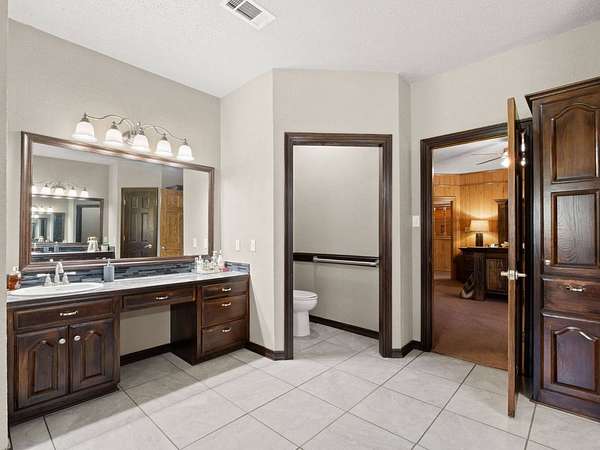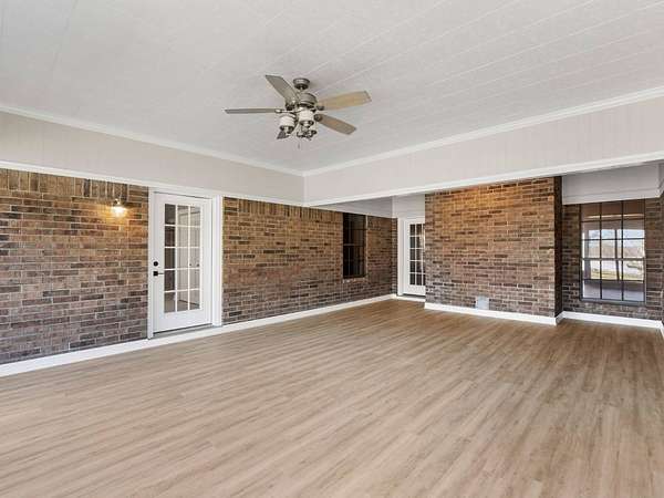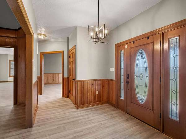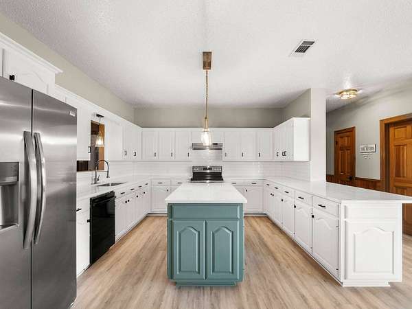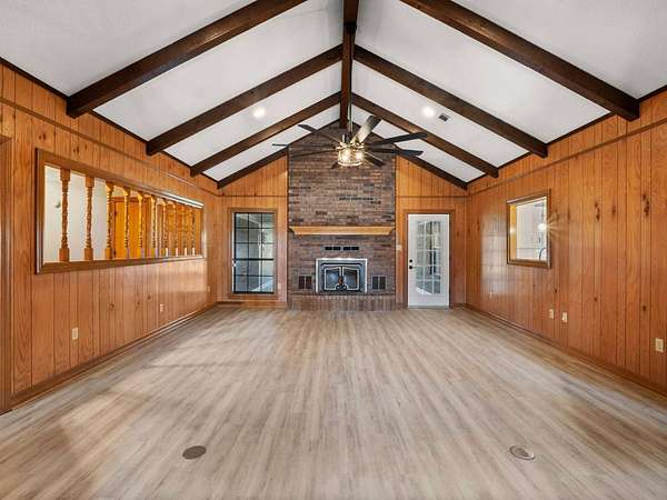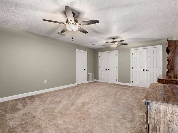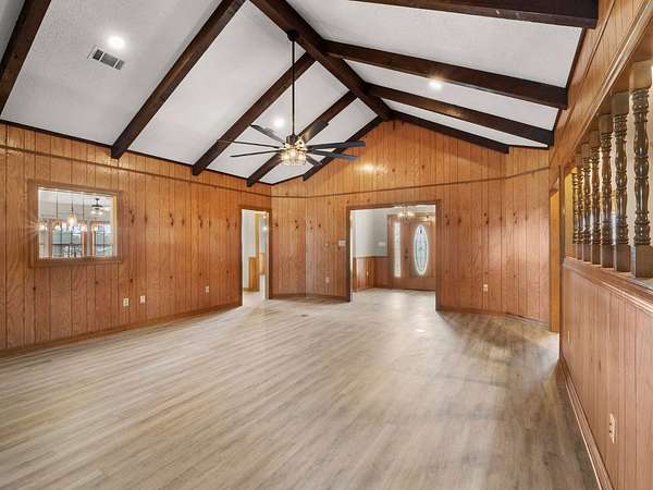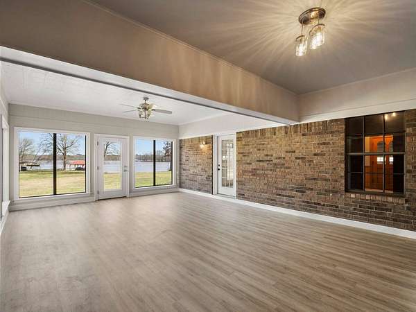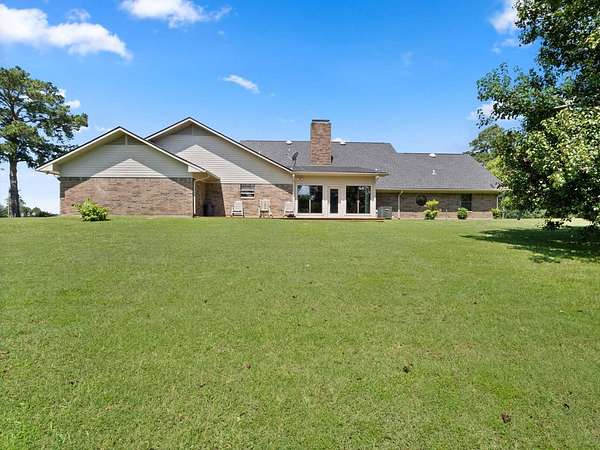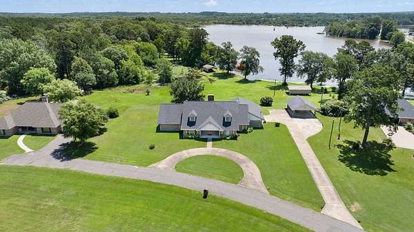 This 1 1/2 story home boasts a spacious 4700 sq ft+/- of living area on 1.8 +/- acres of waterfront property. With 5 bedrooms and 2 1/2 baths this home features 2 en-suite master bedrooms, formal dining, formal living with cathedral ceiling and wood burning fireplace, recreation room and a spectacular sunroom to enjoy your morning coffee and beautiful sunrises. Modernized with stunning granite and quartz countertops, luxury vinyl plank flooring, and stylish lighting fixtures, this home offers a perfect blend of elegance and contemporary comfort. The study provides entrance to the 2nd floor living space which can be utilized to accommodate additional guests. The manicured grounds offer abundant space for outdoor entertainment and relaxation. Enjoy lake living with your very own concrete boat launch, fishing pier and 2 oversized metal covered sheds for all your outdoor sporting needs. In addition to the 2-car garage there is also a detached 2 car carport with a full bath. A rare find in a prime location this home is within minutes of town amenities. Whether you're seeking a permanent residence or weekend getaway this one has it all. Bring your friends, fire up the BBQ and immerse yourself in the tranquil beauty and endless recreational opportunities that lake life has to offer.