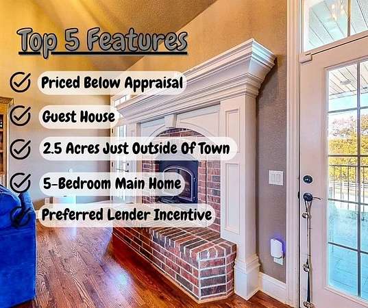 Listed $30,000 below appraisal! Instant equity! Tucked away on 2.5 serene acres just outside Fayetteville, this versatile property combines privacy, space, and convenience. The main house square footage is 3,557sqft and the guest house is 909sqft. The main home features an open, inviting layout with five bedrooms, generous living areas, and a thoughtful flow perfect for daily living or entertaining. Natural light fills the space, while views of the surrounding acreage create a peaceful, secluded feel. A fully equipped accessory dwelling unit adds flexibility for multi-generational living, long-term guests, a home office, or rental income. Recent updates, including a paved driveway and system improvements, bring added peace of mind. Outdoors, enjoy gardening, animals, or quiet evenings under the stars. Offering a unique blend of freedom, functionality, and Fayetteville proximity, this property delivers a lifestyle rarely found in typical subdivisions.