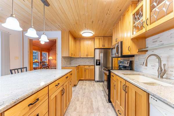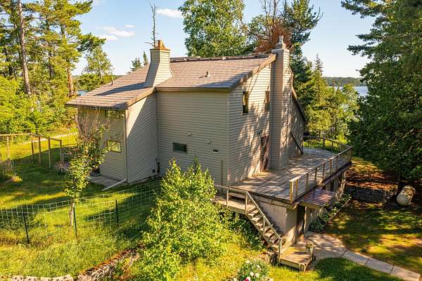 Privately spanning two parcels on a secluded 27.5-acre wooded peninsula, this extraordinary Shagawa Lake property offers an almost unheard-of 2,700+ feet of southwest-facing shoreline, a scale of waterfront ownership rarely available and nearly impossible to replicate today. With panoramic sunset views, towering pines, and complete privacy just five miles from Ely, this is a true Northwoods legacy property. The centerpiece of this property is a well-built, year-round three-bedroom, two-bathroom home designed for comfort and a strong connection to its surroundings. The spacious living room features vaulted ceilings, a propane fireplace, and floor-to-ceiling windows that frame stunning lake views. Skylights bring in natural light, while rich wood finishes add warmth and character. The kitchen is both stylish and functional, with granite countertops, a tile backsplash, and a center island. Sliding doors lead to a large lakeside deck, perfect for outdoor dining and relaxation. The dining room showcases oak flooring, a bay window, and an open layout ideal for gatherings. Upstairs, three well-appointed bedrooms offer picturesque lake views, with the primary bedroom featuring a private deck. The lower level includes a comfortable entertainment room with custom built-ins, a freestanding propane fireplace, and plenty of space to unwind. Outside, the 2700+ feet of shoreline transitions gracefully between sandy, level beaches and dramatic rock ridges, creating a landscape as diverse as it is beautiful. A 36x40 three-stall garage with steel siding provides ample storage. Modern utilities, including a drilled well and an inspected septic system, ensure ease of ownership. A rare opportunity to acquire a truly private Northwoods year-round retreat on one of Ely’s most sought-after lakes. Properties of this size and shoreline seldom come available.
