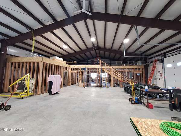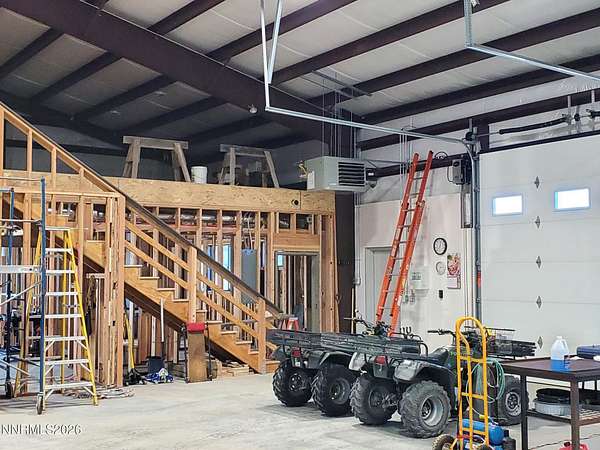 Discover a rare opportunity to own a truly unique property in the historic ranching community of Paradise Valley, Nevada. Set on 17.39 fully fenced and gated acres at the base of the Santa Rosa Mountain Range, this barndominium style structure is ready for a new owner with vision and the desire to complete a remarkable work in progress-whether as a primary residence, retreat, or multi use homestead. The impressive 5,400 sq ft red iron steel building houses a framed in 1,712 sq ft residence currently estimated at 30-40 percent complete. The seller is offering the property As Is, including all construction materials presently on site intended for finishing the residence. Above the living area, a spacious loft-also 1,712 sq ft-provides excellent potential for expanded living space, office use, or generous storage. The steel structure features 16' eaves, a 12'x12' and 14'x14' roll up door with openers, three man doors, two propane shop heaters, LED lighting, full insulation, multiple 220 and 110 outlets inside and out, and a 6" reinforced concrete slab designed to support heavy vehicles and equipment. The shop area offers approximately 3,688 sq ft of versatile workspace, with additional exterior security lighting illuminating the driveway and compound. The main compound surrounding the barndominium reflects years of thoughtful planning and care. A looping driveway is lined with a variety of trees and shrubs on an automated drip system, complemented by several frost free faucets placed throughout for easy water access. Multiple auxiliary buildings enhance the functionality of the property, including a toy garage, pump house, storage shed, greenhouse, open faced equipment shed, and a multi use building with power and heat-ideal for storage, a bunkhouse, or a she shed. A three tank fuel station, which is negotiable, provides on site fueling for vehicles and equipment, eliminating long trips to town. Two RV hookups with a large concrete pad offer additional convenience for guests, recreation, or extra parking. Prior to close of escrow, the seller will install a new well on the subject property, replacing reliance on the neighboring parcel's well. Beyond the compound lies a large pasture area suitable for animals, offering ample space to create the rural lifestyle you envision. Paradise Valley is known for its quiet charm, sweeping landscapes, and rich ranching heritage. While the property feels wonderfully secluded, it is only about 45 minutes from Winnemucca, where you'll find county services, medical and dental care, shopping, dining, entertainment, and more. Outdoor enthusiasts will appreciate immediate access to hiking, mountain biking, hunting, rock hounding, ATV riding, camping, and countless wilderness adventures just minutes from the front door. This property offers an exceptional foundation with endless potential-ready for someone to bring their vision to life in one of Nevada's most scenic and storied communities.