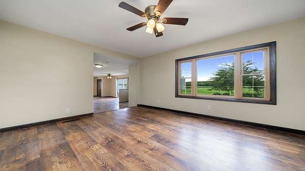 Welcome to your very own slice of country paradise! This spacious 4-bedroom, 2-bathroom home offers 2,160 square feet of comfortable living space, with updates that perfectly balance modern convenience and rural charm. The recently renovated kitchen makes meal prep a breeze-and a great excuse to stay indoors if you're not quite feeling the morning chores. Set on approximately 30 acres, this property blends function and freedom. You'll find 25 acres of established pasture ready for livestock and a 2-acre hay field. For those who dream of a sustainable lifestyle, it's more than possible here-it's the daily routine. Several outbuildings complete the scene, including a Morton building, grain bin, and classic corn crib. Your livestock will appreciate the electric cattle fence powered by a robust 100-mile fencer-because even cows deserve high-performance fencing. Need to unplug? Cast a line in the private slough, home to fish and tranquility alike. Whether you're raising animals, growing crops, or simply craving space to roam, this property checks all the boxes. The primary bedroom and generous layout offer a cozy retreat after a long day outdoors, and with an abundance of nature and potential around every corner, this property is not just a home-it's a way of life. Bring your boots, your vision, and maybe a fishing pole. This is rural living with room to grow. Seller is motivated, check it out and bring an offer!