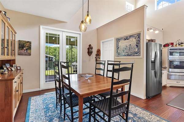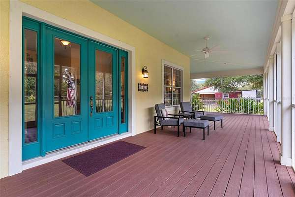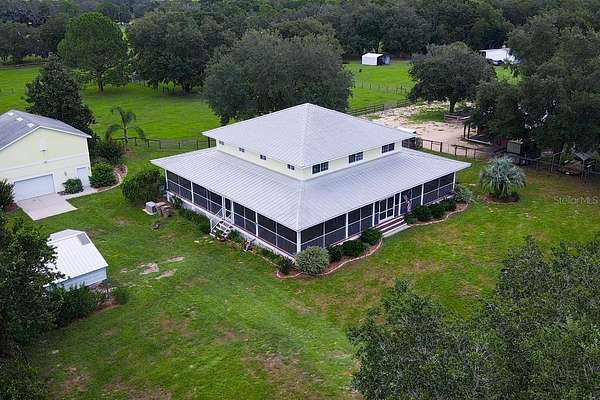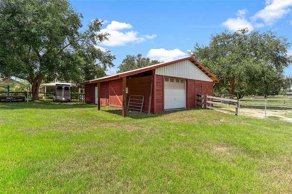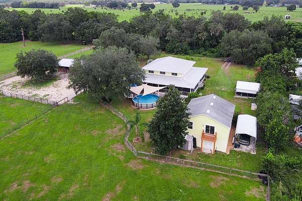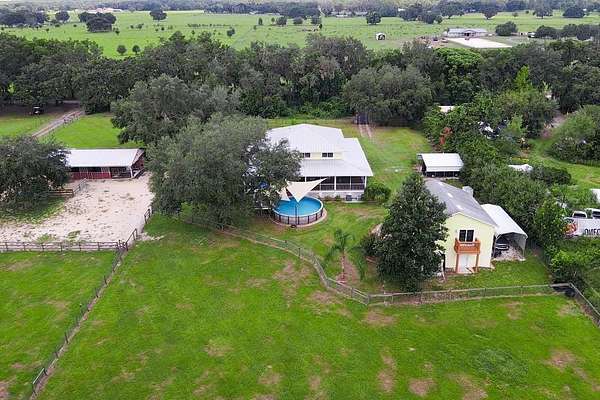 Under contract-accepting backup offers. * BRING THE HORSES * TIMELESS QUALITY RETREAT with BARN, POOL, and GARAGE w WORKSHOP, fully FENCED AND almost 5 ACRES in RIDING DISTANCE to HORSE TRAILS. This beautifully designed home blends country living with modern comfort. Set on 4.6 FULLY FENCED ACRES, it features a WHOLE HOUSE GENERATOR, custom HORSE BARN, detached GARAGE-STUDIO with loft, and plenty of space for animals, hobbies, workshop and outdoor living. Highlights include a METAL ROOF, HARDIE PLANK SIDING, and a WRAPAROUND SCREENED PORCH overlooking your land. Inside, enjoy RICH WOOD FLOORS, a CHEF'S KITCHEN with GRANITE counters, gas range, walk-in pantry, and stainless appliances--all open to the living and dining areas. The primary suite offers a SPA-LIKE BATH and peaceful retreat. Enjoy the view of your horses grazing, or step outside to your private pool, the perfect spot to relax after a ride or entertain friends. With NO HOA and easy access to Ocala National Forest trails, this property is ideal for trail riders, equestrians, or anyone seeking space, privacy, and modern conveniences. CALL FOR YOU PRIVATE SHOWING, these DESIRABLE LOCATIONS are RARE!