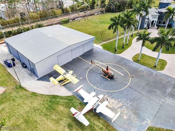 Your aviation dreams can soar! Experience absolute luxury and unparalleled sophistication! Nestled on 4.19 acres within the exclusive Pine Shadows Air Park, this magnificent estate is the ultimate haven. The property exclusively caters to private plane and helicopter enthusiasts with its own private 3200ft lighted and paved landing strip and a colossal 6400 square foot hangar equipped with a caretaker apartment and office. A private helipad adds an additional layer of exclusivity and convenience. On entering the main house, prepare to be captivated by its grandeur. With 4 spacious bedrooms, 5.5 bathrooms, two offices and a living area spanning 6400 Sq ft this estate ensures superlative comfort for the discerning homeowner. Indulge in ultimate culinary luxury with a gourmet kitchen adorned with four dishwashers, a top-of-the-line Sub-Zero refrigerator, and an expansive entertainment bar fit for hosting lavish gatherings. Savor the finer things in life in the wine tasting room, complete with a private temperature controlled wine cellar. Enjoy your favorite films in the estate's movie theater or unwind next to the double-sided fireplace in the living room or owner suite. Marvel at the ornate ceiling murals, stylish tray and coffered ceilings, and the main suite bath with a designer mosaic shower tower and lavish spill-over tub. The second-floor guest quarters delight with a balcony overlooking the opulent, resort-style pool area and grotto pool. Enhancing the allure of this prestigious estate is a charming guest house with living room, full kitchen, 2 bedrooms and a bath, offering a luxurious retreat for your guests. The property has undergone an extensive $1.3M renovation in 2020, which included a new roof, impact-resistant windows, and a brand-new septic system, enhancing the overall appeal of this stunning residence. Equipped with a state-of-the-art whole-house generator, uninterrupted power supply guarantees an exquisite living experience tailored to your comfort. Development has fuel farm.