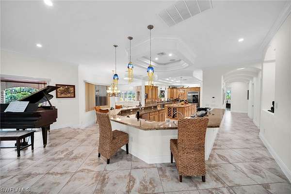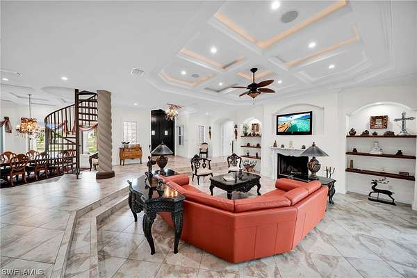 - Bathtub, Bidet, Breakfast Area, Breakfast Bar, Built In Features, Coffered Ceilings, Dual Sinks, Entrance Foyer, Fireplace, French Doors Atrium Doors, Jetted Tub, Kitchen Island, Main Level Primary, Multiple Shower Heads, Pantry, Separate Formal Dining Room, Separate Shower, Sitting Area In Primary, Split Bedrooms, Tray Ceilings, Wet Bar