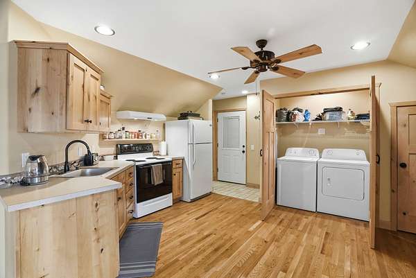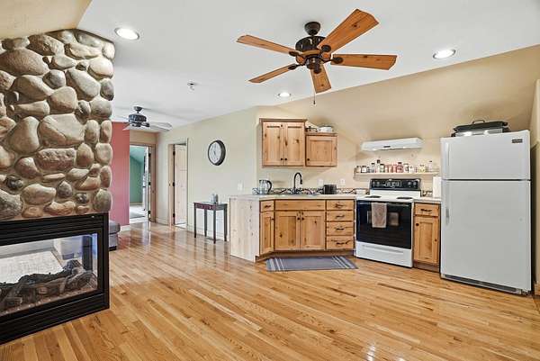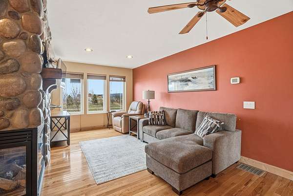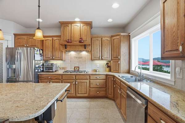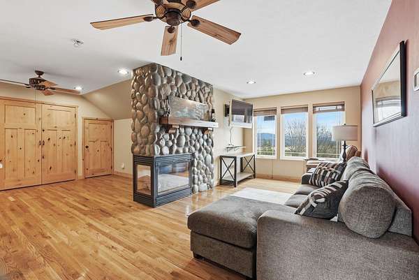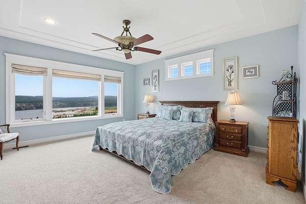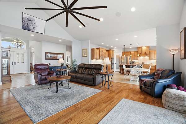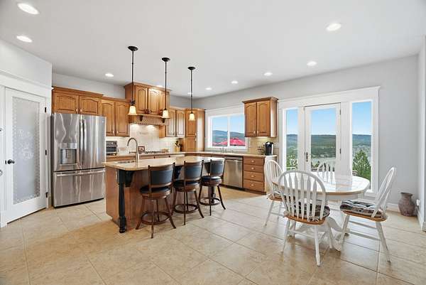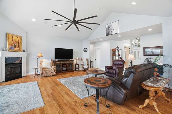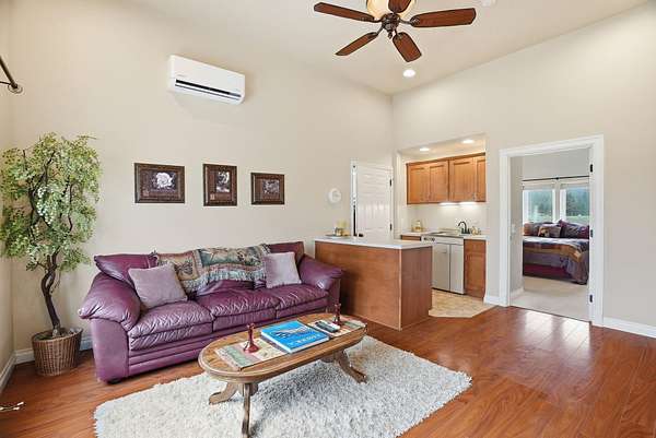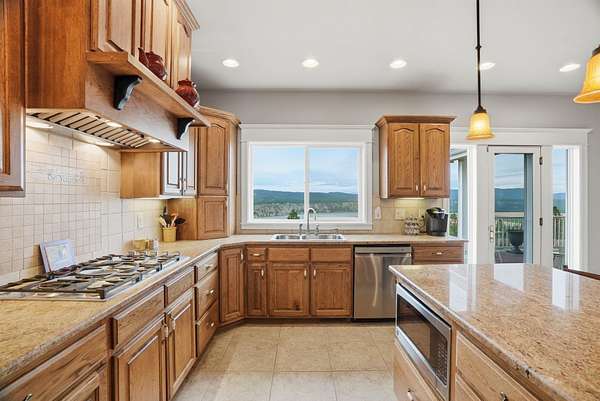 Expansive lake, farm & territorial views surround this exceptional multigenerational estate offering privacy, wildlife sightings & beautiful sunrises over the ridge. Primary home is a Single-level rancher just over 2,000sqft, 2 bedrooms/2.5 bathrooms, attached 3-car garage & open great room featuring cathedral ceilings, view windows & hardwood flooring in main living areas. Kitchen includes granite counters, tile floors, hickory cabinetry, large island and double oven plus formal dining room. Primary suite w/ full bath & walk-in closet, guest bedroom w/ private 3/4 bath. Expansive deck & large patio w/ built-in BBQ & water feature create inviting indoor-outdoor living. Matching cement-sided outbuilding includes heated ~640 sq ft workshop plus 48x32 RV shop. 2 separate ADU's offer a lower 1 bed/1 bath & 2 bed/1 bath upper unit. Fenced garden, Full-service RV setup, ATV trail & 60+ GPM well complete this rare opportunity.