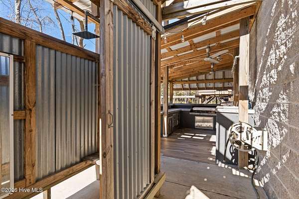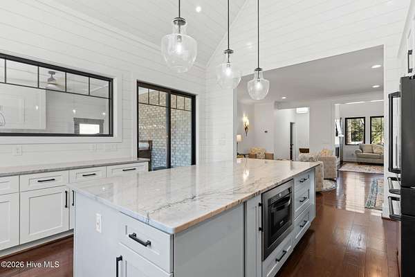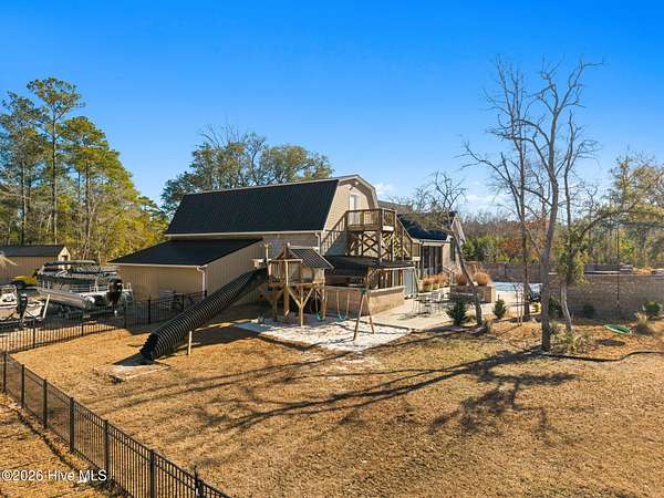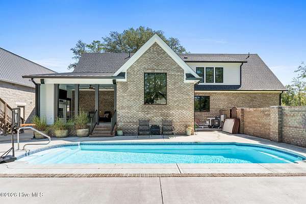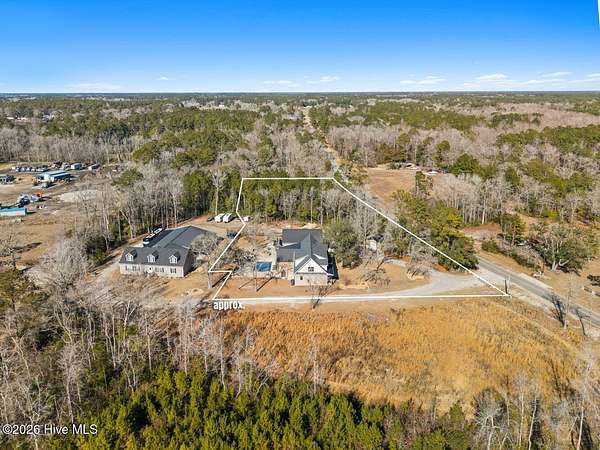 Luxury Coastal Farmhouse on 2 Acres - Just 7 Min from Holden Beach. Custom brick farmhouse built in 2023 by JT Sipe Building Company, offering the perfect blend of coastal convenience and refined country living on 2 acres. This thoughtfully designed home features high-end craftsmanship, modern efficiency, & exceptional indoor-outdoor living just minutes from the beach. The open floor plan is filled with natural light and showcases hardwood floors throughout the main home, along with custom shades, including remote-controlled shades in the living room and kitchen. The chef's kitchen is the heart of the home, featuring quartzite countertops for easy maintenance, an oversized farm sink, a large gathering island, and a ZLINE dual fuel range with a gas cooktop and electric oven. The main level includes two bedrooms, highlighted by a primary suite with dual vanities and two separate closets, along with a second private ensuite and a guest bath. Upstairs, you'll find two additional bedrooms, a full bath, a versatile office/flex space, and a storage room. Efficiency features include a tankless water heater plus a dedicated 12-gallon electric unit for near-instant hot water in the primary suite. The home is wired for a generator and includes a dehumidifier in the crawlspace. Outdoor living shines with a covered porch featuring roller shades and a gas fireplace, along with a saltwater pool, hot tub, outdoor kitchen, fire pit, outdoor shower, and a large fenced-in area The detached 22'x42' garage/workshop includes a 12' door to accommodate a 26' boat. Above the garage/workshop are 4 additional rooms and a full bath, connected to a separate 1,000-gallon septic. See disclosures for additional details. A rare opportunity to own a newer construction, acreage, and luxury finishes just minutes away from the beach