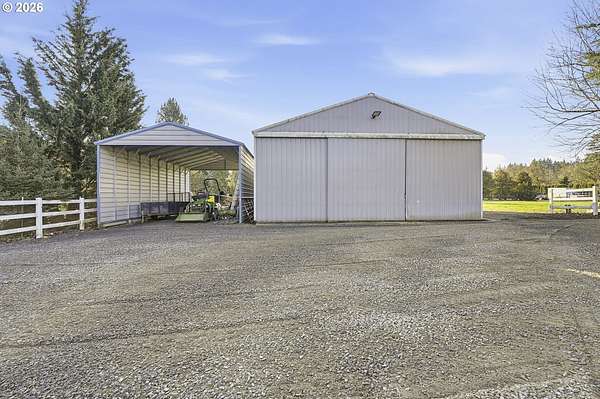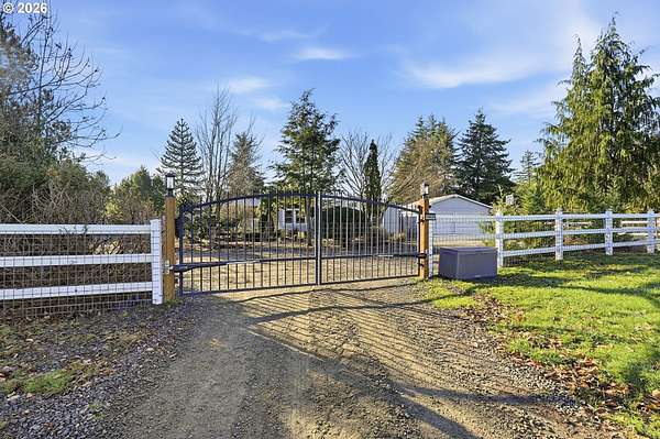 Tucked behind a gated entry, this private and usable 2-acre property offers the rare feeling of space, freedom, and opportunity just minutes from town-an uncommon blend of acreage living and everyday convenience. With pasture space and room to roam, it's a place where mornings begin quietly, cozied up by the wood-burning fireplace, and days invite you to get outside, get creative, and enjoy the land. Inside, the open, vaulted layout is filled with natural light from skylights in the kitchen and bathrooms, while new carpet and fresh interior paint create a bright, welcoming atmosphere. Step outside to enjoy the covered deck, peaceful front landscaping, and abundant space for pursuing your passions-whether that means tinkering in the permitted 36x40 shop with 220V power fully integrated with the home, storing toys and tools, or parking boats, RVs, or extra vehicles in the oversized carport. A hard-to-find combination of privacy, functionality, and usable acreage, this property offers room to breathe and flexibility to grow-minutes from downtown Oregon City and its amenities and services.