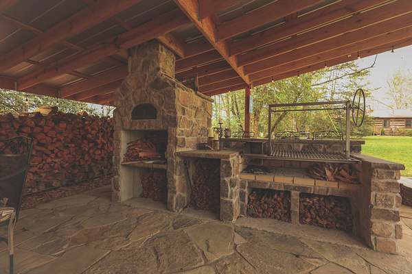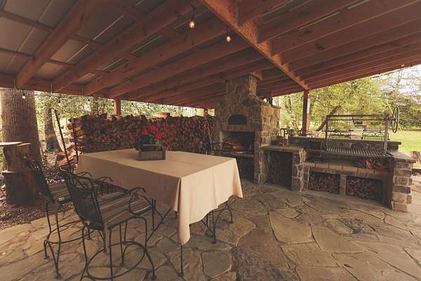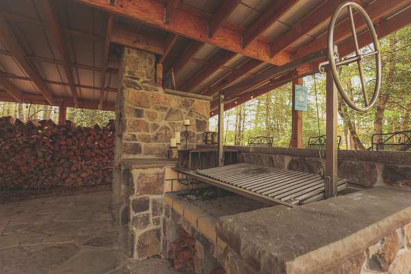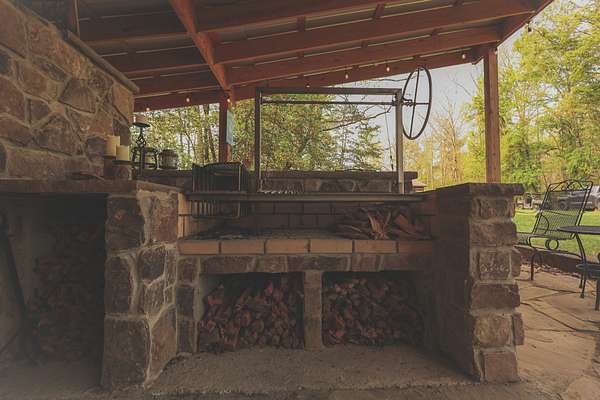 Wildlife Area and the Obed Wild and Scenic River closeby, the Morgan 93 really makes for a once-in-a-lifetime place for someone craving to be in and near the outdoors. Upon entry, you immediately feel the craftsmanship and passion for this property. The nearly 500-foot rock wall and archway lining the driveway were handcrafted by stone found on the property. This is just the beginning of the Catoosa Cabin! Family time and outdoor cooking are favorite activities of the current owners, and here you will find a rock fire pit, an Argentinian grill, and a stone wood-fired Chicago brick pizza oven. Covered from the elements, a good supply of oak and hickory firewood will provide plenty of fuel for your family events. It really is a space that is unrivaled!