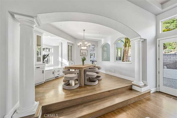 Inside, over 5,000 square feet of light-filled living space was designed to frame the landscape at every opportunity. Cathedral ceilings, a rebuilt grand entry staircase, and expansive windows create architectural presence, while nearly every room opens directly to terraces, poolside spaces, or fresh air.