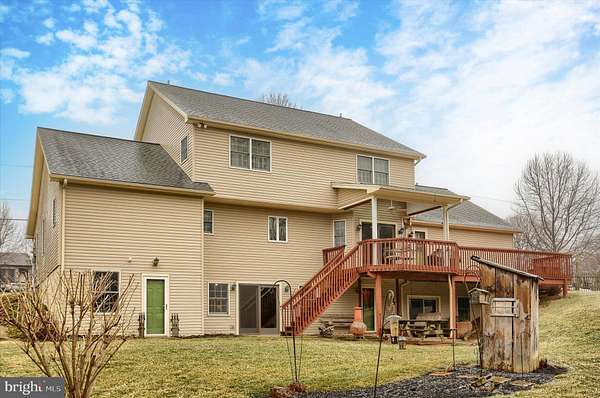 Well maintained spacious traditional style 5 bedroom home in Cumberland Valley S.D. offers plenty of room to roam on a 1.61 acre lot. If you are looking for space, don't miss this one! Large kitchen with oversized center island, loads of cabinets & countertops, built in desk area , breakfast nook, formal dining room, formal living room with fireplace, den, and 1st floor large bedroom suite with full bath, jacuzzi, separate shower and walk in closets. The second floor features 4 large bedrooms and storage area. Covered Rear deck allows for a quiet space for sitting and enjoying quiet mornings and evenings with Mother Nature. Interior and exterior access to the full finished basement with 1/2 bath, large Family Room , plus a spectacular Bar Area that will make this a hit for all sporting seasons and family occasions! Under garage storage area plus an additional finished room used for train displays ( by the present owner.)